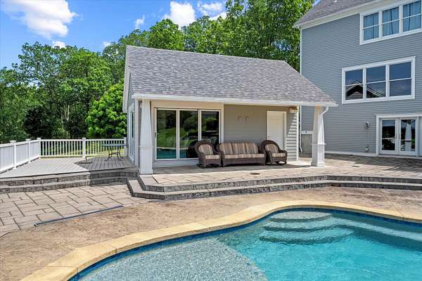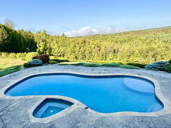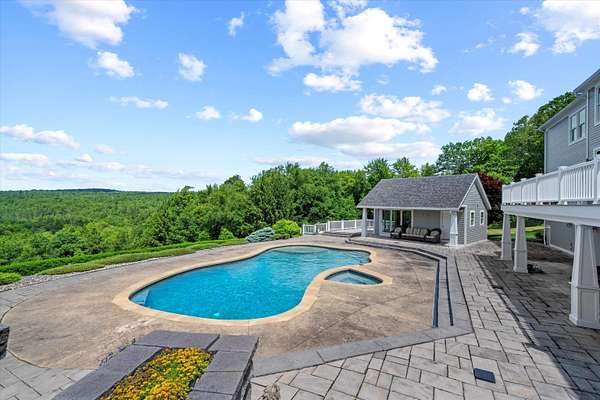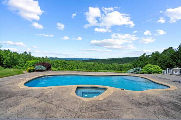 Set on 10 private acres with spectacular mountain views extending to the Green Mountains of VT and beyond, this stunning home is designed for effortless living and entertaining. Offering 5 bedrooms, including 3 with breathtaking mountain views, the home features a spacious primary suite with luxurious ensuite bath and custom walk-in closet. The chef’s kitchen, facing the mountain views, is equipped with Wolf ovens, Sub-Zero refrigerator, and a secondary prep kitchen/pantry. A sunny bonus room above the heated garage with mountain views and a built-in Murphy bed for guests. The walk-out lower level offers a gym, extra room, ¾ bath, and abundant storage. Built in 2021, the separate modern, air conditioned garage building includes a 2-room office/studio, half bath, EV charger, workshop, plus its own well, septic, and generator. Outdoor living is unmatched with a luxurious pool, hot tub, and pool house featuring a full kitchen, indoor lounge, and expansive deck, all perfectly positioned to capture the incredible views. Beautifully landscaped grounds include flowering gardens and an irrigation system. Ideally located near hiking, biking, skiing, rivers, and lakes, and just minutes to Walpole & Keene, and only 45 minutes to DHMC and Lebanon.