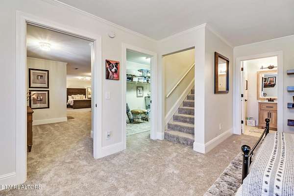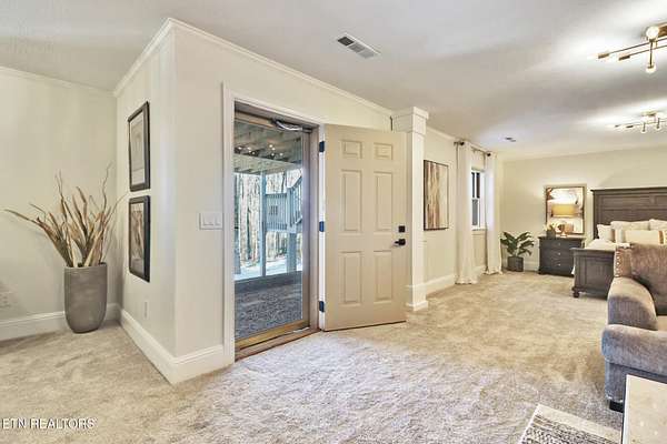 Experience comfort and serenity in the heart of Tennessee's golf capital. Fairfield Glade offers an active lifestyle community with abundant amenities. For more details, visit Fairfield Glade Resort Amenities. This solidly built home features an engineered design, including added rebar and concrete in the foundation, 2x6 exterior walls, 5/8'' sheetrock throughout, and an all-brick exterior. Recent renovations under the current ownership include an expanded deck and stairs (2022), Crab Orchard stone wraparound walkway, and a custom-designed chef's kitchen equipped with ZLine appliances, which include a dual oven, refrigerator, dishwasher, and cooktop. The quartz countertop has been extended to accommodate guests. Additional upgrades completed in 2022 include refinished 3/4'' plank hardwood flooring, enhanced lighting on the main level, fresh paint, and a stylish wallpaper feature wall. The master bath boasts a dual shower system with a rain shower, a vanity with a marble countertop, and updated vanities in both the upper and lower guest bathrooms. The entire downstairs has been fitted with new carpet, paint, and lighting in 2024, along with an electric fireplace. The HVAC system, water heater, garage doors, and garage door openers were also updated in 2024. The exterior features custom-laid Crab Orchard fieldstone stairs, wrapping around from the front to the lower level, completed in 2024. This home is truly a showstopper, with all updates curated by a professional designer. Nestled in a picturesque wooded area, sold with adjacent lot, 14 Quill Court, for a combined 1.93 acres in a quiet cul-de-sac, overlooking lush woods, wildlife, and seasonal views of Lake Dartmoor.