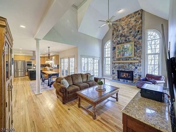 Welcome home! Step inside 15 Ramsey Road in the coveted Hill View Farms neighborhood. Set on a quiet cul-de-sac on 3.42 acres, this tastefully refreshed and meticulously maintained 1998 model home offers a rare blend of peaceful country living and everyday convenience. A wooded creek frames the property, creating a serene backdrop, while shopping, dining, and commuter routes remain easily accessible. Quality and attention to detail are evident upon arrival, highlighted by the newly repaved driveway, pristine 3-car garage with epoxy flooring, Level-2 EV charger, and newer roof (2022). Inside, a seamless open-concept layout connects the gourmet kitchen with Wolf 6-burner range, breakfast area, family room, and office with custom built-ins, along with a sunlit west-facing patio. Detailed moldings throughout add warmth and character. Upstairs, four spacious bedrooms include a luxurious primary suite with spa-like bath featuring a steam shower and soaking tub, as well as two walk-in closets. Among the four bedrooms, two are connected by a Jack-and-Jill bath, one with a walk-in closet, ideal for guests or extended stays. A finished third-floor recreation room adds flexibility, while the full unfinished basement with high ceilings and direct garage access offers excellent potential. Outdoors, enjoy a covered porch, brick patio, fenced garden, and professionally landscaped grounds. A home that offers a true sense of comfort: inviting, functional, and thoughtfully designed.