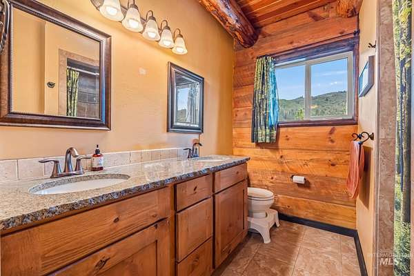Escape to the country living with 360 views all around on this property and at the edge of the property is a view of the river below. Rustic Custom log home with wood burning stove in great room and upstairs. Large Windows to soak in the views from. Kitchen has granite counters with island and rock covering front of island for that little extra mountain feel. Walk out basement with lots of views from and covered patio area. Large wrap around covered porch. This property is so private and secluded for privacy. Large 1500 sqft 5 car garage or shop area. Large garden ready to plant this spring. Private road with maintenance agreement. Double gates in entrance. Down the road from lucky peak park and a 15 min drive to boise where all the amenities are available. Go north to the private hot springs and Idaho City.