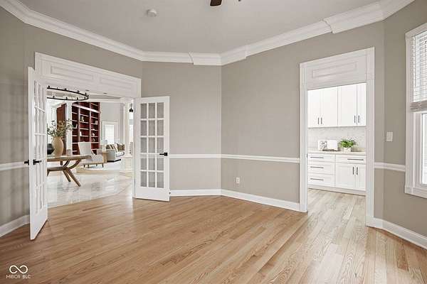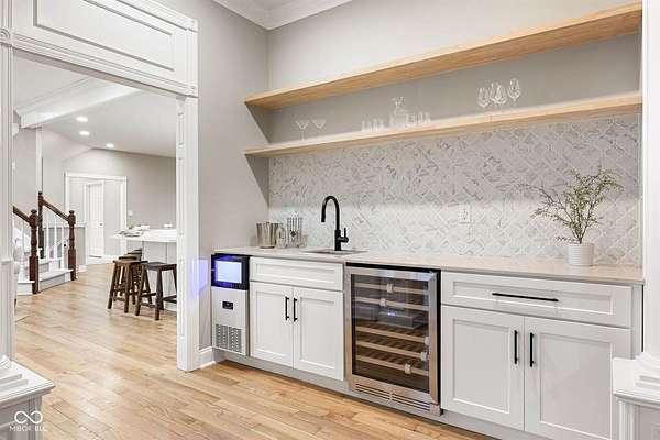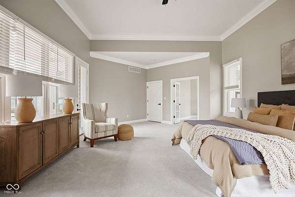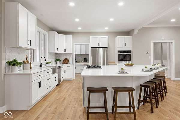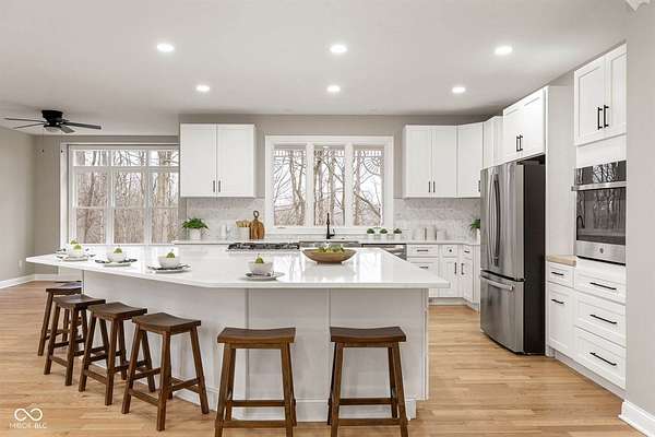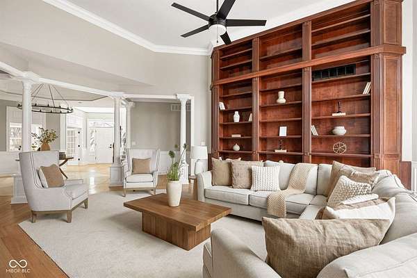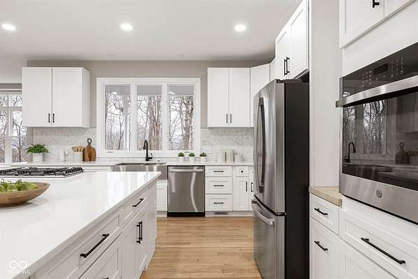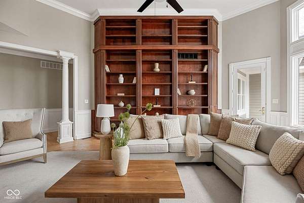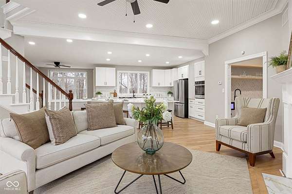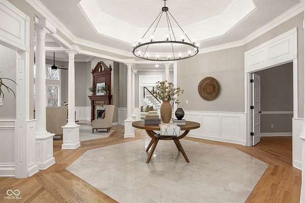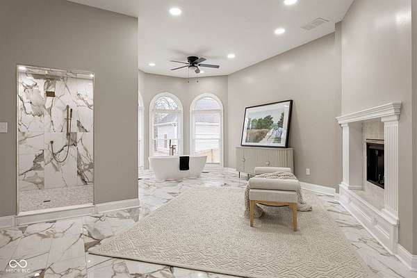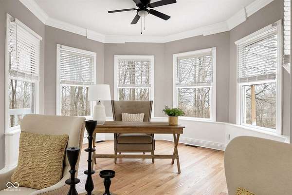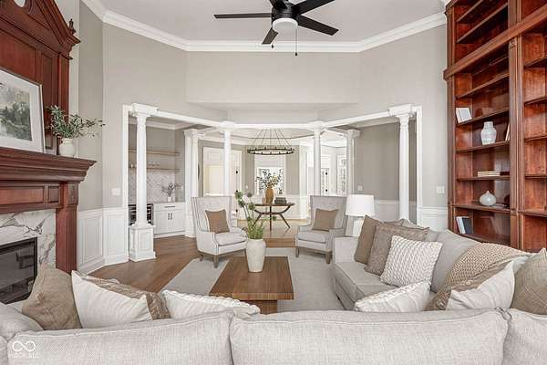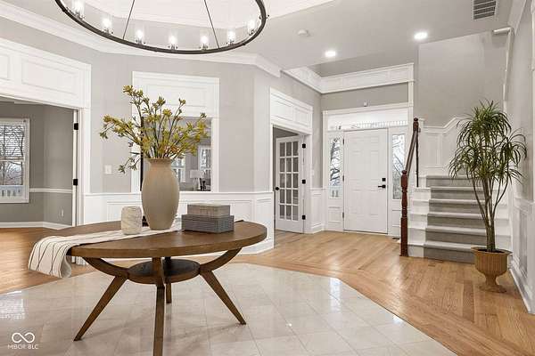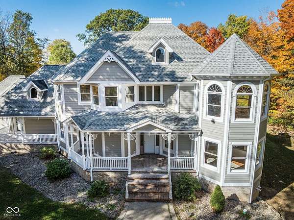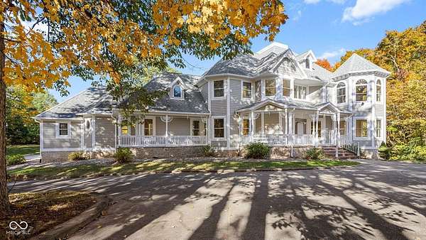 Welcome to an extraordinary, fully remodeled Victorian masterpiece at 15 S Creedmoor in Anderson, Indiana, where timeless architecture meets modern luxury. Encompassing nearly 9,700 square feet of impeccably finished living space, this 5 Bedroom, 5 Bathroom estate is set atop a scenic hill on almost 2.5 acres of mature, tree-lined grounds, offering both grandeur and privacy. A stunning entryway sets the tone, leading to an expansive living room filled with natural light and refined finishes. The main level features an elegant primary suite with a double-sided fireplace, a massive spa-like en-suite, and an attached private study-perfect for a nursery, sitting room, or retreat. Also on the main floor are a stately office and family room, where select original details have been thoughtfully preserved, blending historic charm with contemporary design. Spacious laundry room with a sink as well as a dog wash station. In total, the home features four fireplaces, each adding warmth and character. The kitchen is complemented by a butler's pantry and an oversized walk-in pantry, ideal for entertaining and everyday luxury living. Upstairs, you'll find three spacious bedrooms, a full bathroom, a large loft, an additional study, and a finished attic walkway that uniquely connects to the garage. The lower level is an entertainer's dream, offering a generous living area, bedroom, full bathroom, fireplace, wet bar, and a dedicated theatre room, creating the perfect space for hosting or relaxing in style. Located just 4 miles from Anderson Country Club, around the corner from Edgewood Golf Course, and 8 miles from Harrah's Hoosier Park Casino, this exceptional home delivers luxury, space, and convenience in one remarkable offering. A rare opportunity to own a truly iconic Victorian estate, fully reimagined for modern living. *New Front Door On Order. Rendering in Supplements*