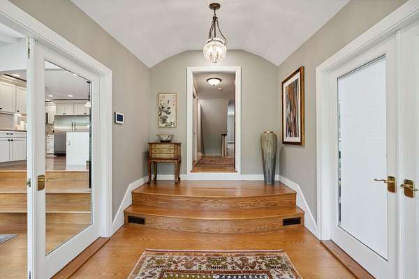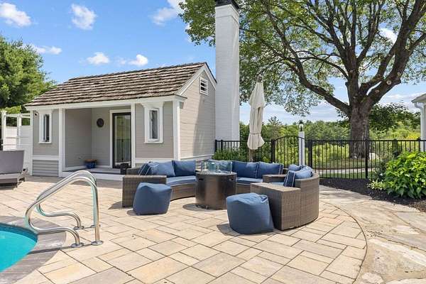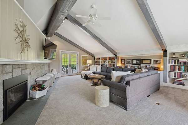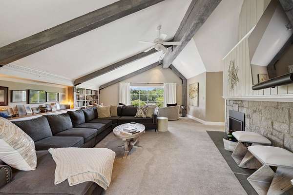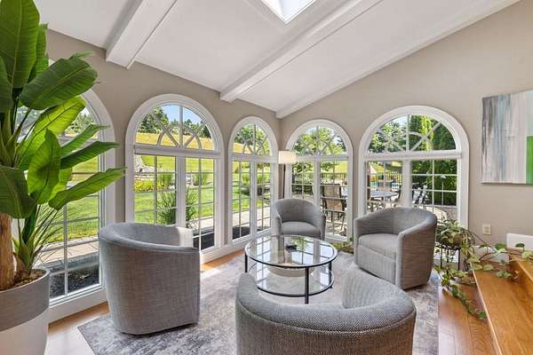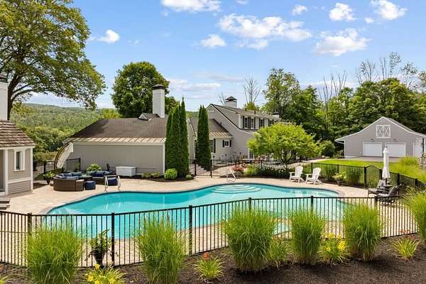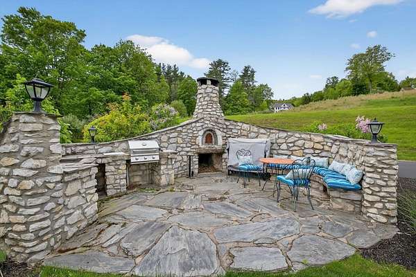This exceptional residence offers the perfect blend of timeless New England charm and modern luxury, thoughtfully designed for both family living and grand entertaining. Set on over 5 acres with breathtaking views of the valley and surrounding farms, the approach to this property takes you through the historic Stone Arch Bridge, setting the tone for a truly remarkable home. Completely updated and renovated in 2021, the home spans over 6900 sq. ft. with 10 rooms, 4 bedrooms, 4 full baths, and 2 half baths. The first-floor primary suite includes a private balcony and a beautifully renovated bath. A guest suite with a private bath provides comfort and privacy for visitors, while additional highlights include a gym with whirlpool, lower-level game room with 75 TV, and Sonos surround sound throughout. The heart of the home is the dramatic great room with spectacular custom-hewn beams, built-in bookcases, a cozy gas fireplace, and a picture window framing stunning valley views. A spacious dining room with butler's pantry is perfect for hosting, while three fireplaces add warmth and character. Step outside to beautifully landscaped grounds featuring a 44,000-gallon pool with pool house, built-in outdoor grill, and pizza oven. Expansive patios provide the ideal setting for gatherings, all surrounded by mature plantings and scenic conservation land. Two garages. Seller is a licensed agent in the state of NH.
