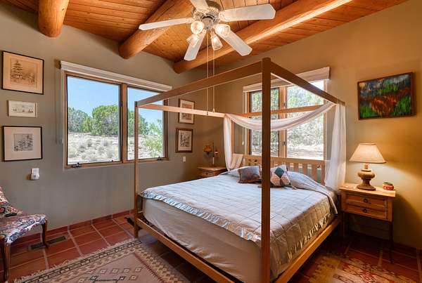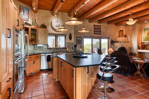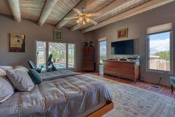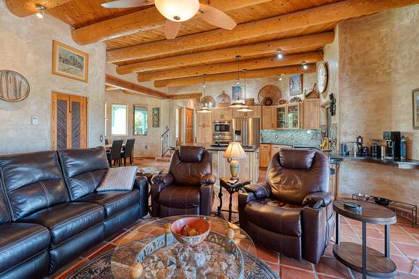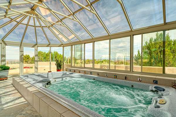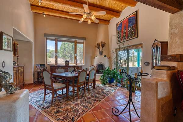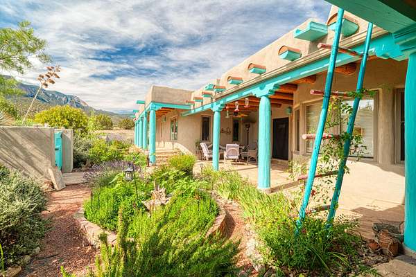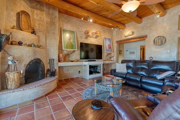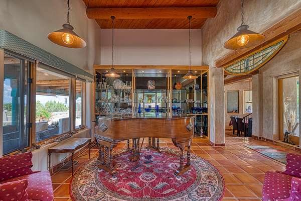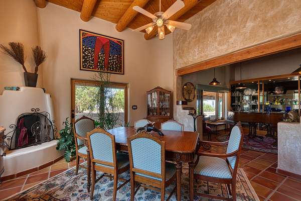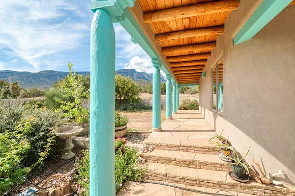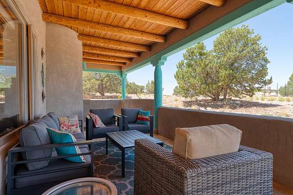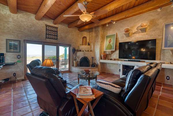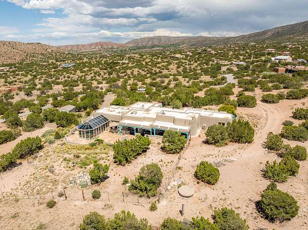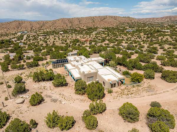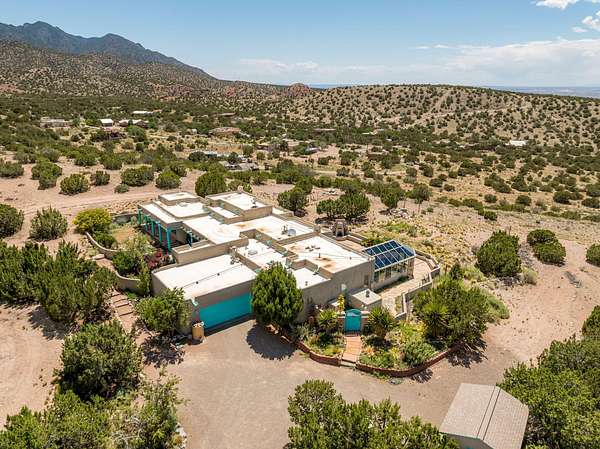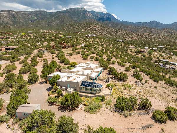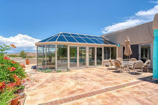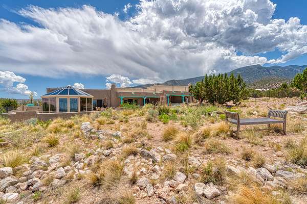 Welcome to your private resort nestled at the base of the foothills in Placitas. 3 secluded acres offering privacy for that summer dip in the pool or hot tub. The inviting floorplan offers elegant classic Southwest styling with a cozy, charming atmosphere. Two custom kiva fireplaces enhance the living and family rooms. A central island with bar seating for four invites lots of helpers in the kitchen. Cozy dining is found off the kitchen & family room with an open design. Formal dining is also included in the living dining combo for those special occasions like dinner with friends. Luxury appliances make cooking a breeze. The rear portale for spectacular Sunset viewing on Sunset Blvd. Follow the sunroom pool & hot tub enjoyment with a hot sauna in the primary bath. You can have it all!