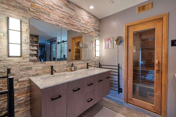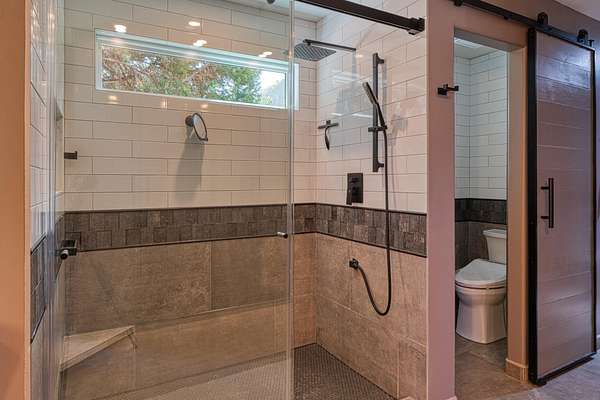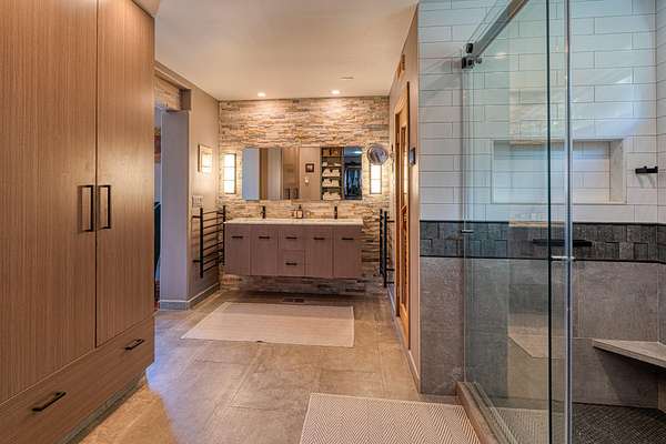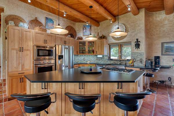 - Beamed Ceilings, Bookcases, Breakfast Area, Breakfast Bar, Dual Sinks, Entrance Foyer, Great Room, High Ceilings, Home Office, Kitchen Island, Living Dining Room, Main Level Primary, Multiple Primary Suites, Pantry, Separate Formal Dining Room, Separate Shower, Shower Only, Skylights, Walk In Closets, Water Closets