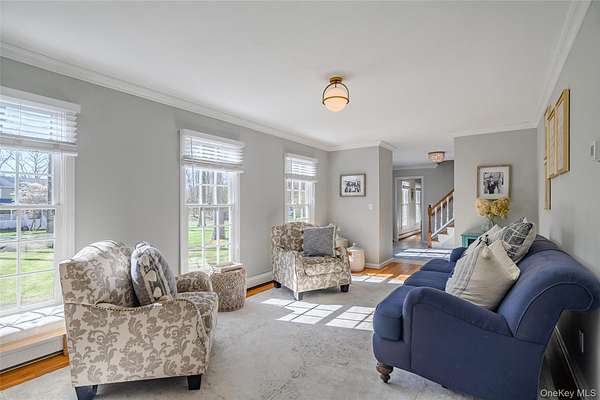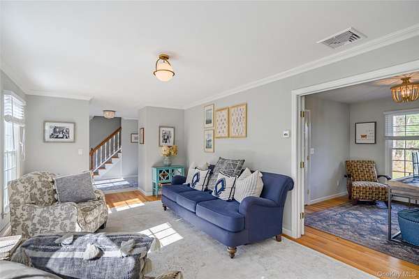 Beautifully maintained Colonial offering over 2,470 sq ft of living space, ideally situated in a sought-after cul-de-sac neighborhood in desirable Sandy Hook. This exceptional home combines classic charm with a warm farmhouse feel, modern updates, and a prime commuter location close to all major highways and trains, plus close proximity to schools, restaurants, and shopping. From the moment you arrive, the home impresses with gorgeous curb appeal, professionally landscaped grounds, and a welcoming presence. A spacious entry foyer sets the tone, leading into a light-filled interior with an abundance of natural light throughout. This beautifully updated home truly checks all the boxes. Designed for both everyday living and entertaining, the home features a bright and inviting layout with room to grow. The renovated kitchen showcases painted cabinetry, quartz countertops, tile backsplash, shiplap ceiling, crown molding, updated appliances, propane cooking, and sliders to the deck and outdoor living space. Hardwood floors run throughout all bedrooms, some complemented by crown molding and tasteful finishes. Additional highlights include a renovated full hall bath, main-level laundry, and fresh interior paint throughout, along with stylish wallpaper accents and custom moldings in select bedrooms. Extensive recent upgrades provide peace of mind and added value, including a newly paved driveway, central air, new deck, new gutters, new chimney cap, exterior trim updates with area new siding, Azek fascia boards, and a full exterior paint refresh in 2023. Enjoy outdoor living at its finest on a level lot featuring a spacious bluestone patio and composite deck overlooking a private backyard-ideal for entertaining or relaxing in a serene setting.Enhanced outdoor lighting and tree removal further elevate the property's appeal. Beautifully updated inside and out, this move-in ready home offers comfort, style, and functionality in a highly desirable location-perfect for today's lifestyle.