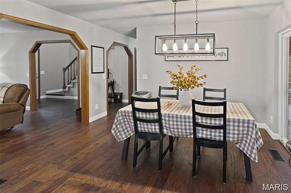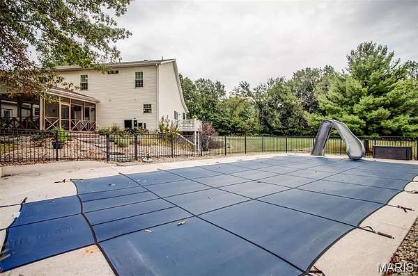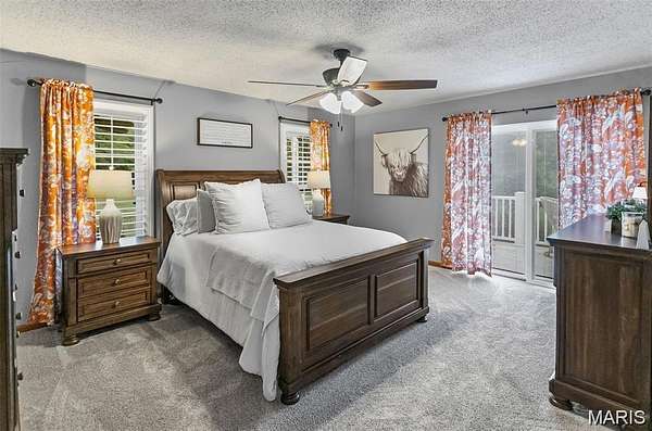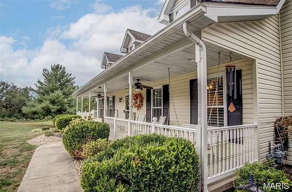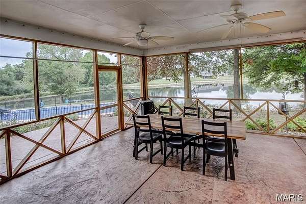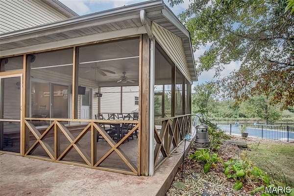 Welcome to your private lakeside retreat! Tucked away on 3.6 acres at the end of Tra Lin Ridge, this property blends comfort, nature, and convenience in one serene setting. The inviting front porch sets the stage for relaxed living. Step inside to a warm living room with a wood-burning fireplace, engineered hardwood floors, and plantation shutters. The eat-in kitchen with granite countertops and newer appliances flows to a screened porch -- perfect for enjoying fresh air year-round. You'll find the primary suite on the main floor as well featuring a full bath complete with dual vanity, beautiful tiled shower, and separate tub. The primary suite also includes a private balcony with water and pool views. Upstairs, you'll find three spacious bedrooms, full bathroom, and a loft area -- offering plenty of room for family and guests. The walkout lower level offers a full bath and room for expansion, ready to finish as a theater, rec room, or guest suite. One of the home's most cherished spaces is the sunroom overlooking the saltwater pool and lake. Whether you're sipping morning coffee or unwinding at sunset, it's a peaceful vantage point to watch the water, deer, turkeys, and abundant aquatic life.A 3-car attached garage plus a 2-car detached garage/workshop provide ample storage and hobby space. Dual HVAC systems ensure year-round comfort. Outdoors is where this home shines. Swim in the inground saltwater pool, fish from the private dock, or simply relax lakeside with endless views. The private drive and wooded surroundings add to the sense of seclusion, while still being minutes from town conveniences. If you're seeking a peaceful sanctuary with modern comforts and a daily connection to nature, this Alton waterfront stunner is ready to welcome you home. Brand New Roof (February 2026)