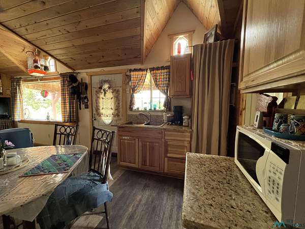 GORGEOUS TINY HOME ON 20 ACRES Custom built tiny home is 684 sq ft and features 1 bedroom, 1 bathroom, living room and kitchen. Large bedroom with plenty of room an office, crafting or storage. Beautiful flooring throughout. Bathroom has a large walk-in shower with glass door. Laundry has space for a stackable washer and dryer. Large windows show of the amazing views. Large garage/barn has plenty of room for 2 vehicles and an ATV. There is an extra large pantry/storage area in the garage and an upstairs guestroom. There is a 5 acre fenced paddock and a hay barn with stalls so you can bring your horses. Elevation changes and rock formations add beauty charm. Watch the deer and elk cross the western meadow and graze among the pinon and juniper trees. This area is home to many different species of wildlife. Amazing sunsets almost every evening and unbelievable skies at night. Wild Horse Ranch is located in the northwest corner of Catron County, surrounded by BLM and the Malpias Conservation area. Take a drive down Highway 117 through the Narrows to the Sandstone Bluffs, La Ventana or the Lava Falls Recreation Area. Approximately one hour from Grants, NM where you will find shopping and medical facilities.