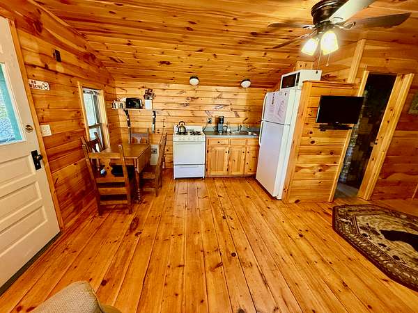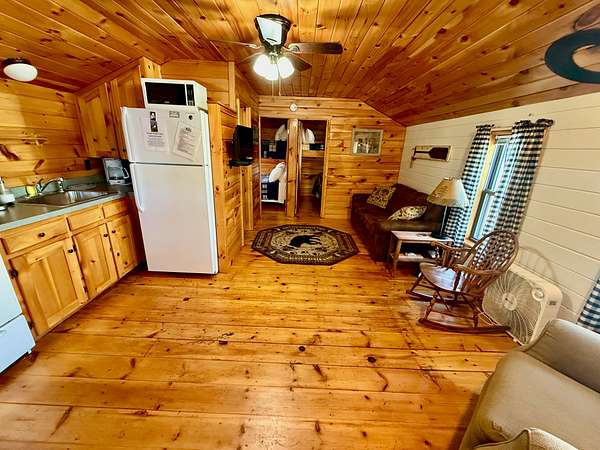 Experience outdoor adventures at Lower Wilson Pond in the Moosehead Lake Region. A lakeside cabin with a private dock to enjoy swimming, fishing, or just the serenity of the lake. A screened-in porch for a lazy afternoon nap or an evening of listening to the songs of the loons sitting on the porch swing. Bedroom 1 has a full-size bed and a twin-size bed (bunk style). Bedroom 2 has a full-size bed and one twin-size bed (bunk style). The bathroom has a walk-in shower. Outside has a fire pit, gas grill, picnic table and Adirondack chairs, and private dock. It is conveniently located directly on ATV and snowmobile trails, and just minutes to skiing at Big Moose Mountain, cross country skiing, hiking, biking, fishing on multiple lakes and ponds, and everything the region has to offer. Lower Wilson Pond spans over 1300 acres with a maximum depth of 106 feet, providing excellent spring-fed fishing for brook trout, salmon, togue, smelts, and cusk. It is located only 3.2 miles from downtown Greenville, where you can enjoy shopping, amenities, and restaurants. Endless activities to enjoy or simply take a moment to appreciate the natural beauty of the well-maintained property. Wilson Pond Cabins on Lower Wilson Pond offers the opportunity to practice the "art of relaxing" and being "in the moment," it will rekindle your spirit and soothe your soul! Other cabins are available for sale.