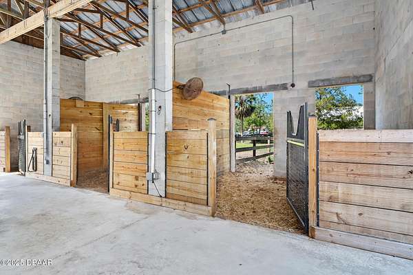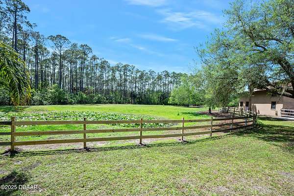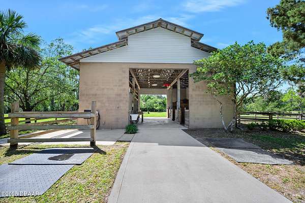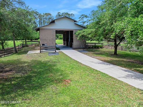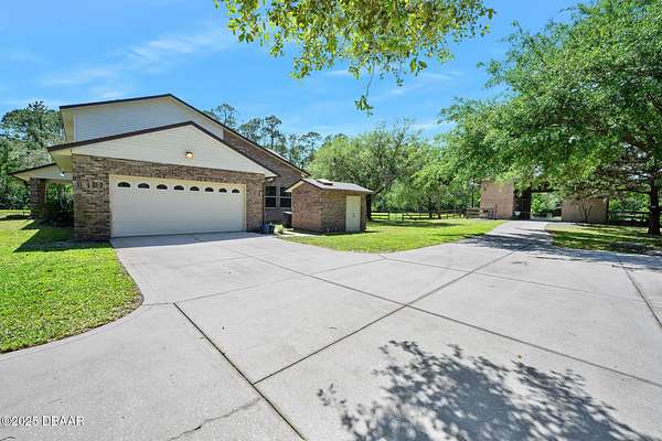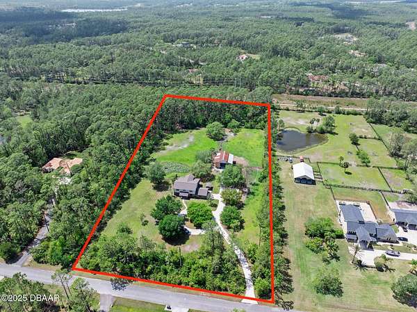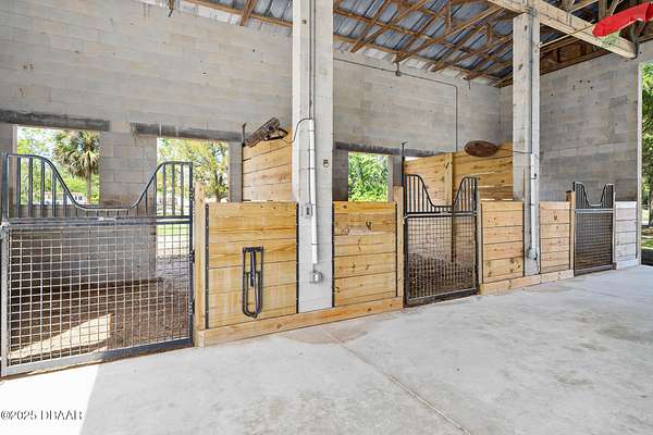 5 Acres, 5 Bedrooms, 3 Pastures, 3 Stall concrete block horse barn with tack room, wash stall and hay loft. Eagle Rock Estates is a one of a kind, gated equestrian community with clubhouse and pool located just 20 minutes to the beach. Constructed in 1990 by a custom home builder as his family's personal residence, this nearly 4000 sq ft home recently received renovations that include a fabulous kitchen that opens up to the great room with soaring ceilings above large pane custom windows encased in handsome wood. The bright and open main floor living spaces are perfect for entertaining or day to day relaxation with French doors that open up onto the expansive covered lanai that overlooks the pastures and pond. 4 of the 5 bedrooms are upstairs including the sprawling master suite with sitting area, walk-in closet and a gracious bath. MORE... The quality brick home with newer roof is private from the quiet road with a generous circle drive, 2 car garage and a large extra parking pad for visitors or barn guests.