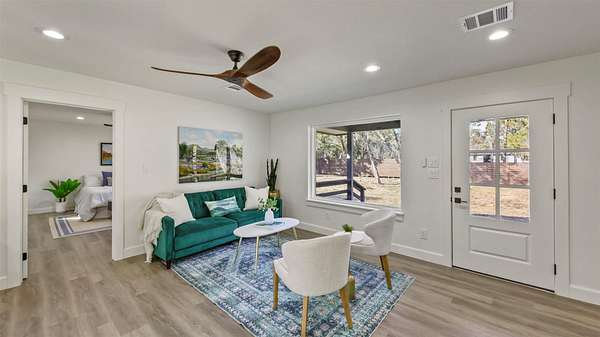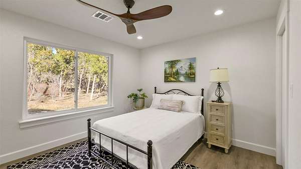 STR's allowed. 2 beautifully remodeled homes consist of a 3/2 home w/attached 2-car garage an a 2/2 guest house on a serene 5 ac backing to a ranch. The homes features a standing seam metal roof and fresh interior and exterior paint for a move-in-ready experience. Step through the double front doors into a welcoming foyer and take in the open floor plan, highlighted by new floors an a cozy wood-burning fireplace. Lg windows in the living and dining areas fill the space with natural light and offer peaceful views of the surrounding landscape. The kitchen is a chef's delight, complete with stainless steel appliances, a center island, stone countertops, abundant cabinetry and pretty pendants that add that sparkle. A convenient laundry area and pantry is located just off the kitchen. The spacious primary bedroom includes room for a seating area, while the ensuite bath features a double vanity, stone counters, and an oversized walk-in shower. Two additional bedrooms are equipped with ceiling fans and share a stylish secondary bath with a large shower. Off the back of the home is a cut limestone paver patio great for morning coffee or backyard barbeques. The Guest House was renovated and taken down to the studs and thoughtfully rebuilt, blending modern convenience with rustic charm. Step onto the inviting covered front porch and into a warm, open-concept interior. New floors flow throughout, and the living room is anchored by a cozy fireplace flanked by custom built-ins. The split-bedroom layout offers privacy, while a dedicated office provides a perfect space to work from home. The kitchen is outfitted with stone countertops, stainless steel appliances (including refrigerator), and a large pantry/laundry combo for added functionality. Enjoy the peaceful surroundings from your private back deck. A move-in ready retreat/family compound with charm, style, and room to roam! Homes sit on 2 separate lots giving you the flexibility to be able to sell if you ever chose too.