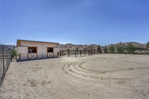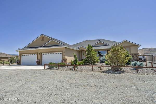 Welcome to your dream retreat- where luxury meets country living on 5 acres of beautifully landscaped paradise. Whether you're looking for space, privacy, or that modern ranch lifestyle, this one checks every box. Spacious open floor plan with premium finishes throughout, including energy efficient construction, an advanced security system, and whole-home water softener. Tesla charger in a completely finished oversized 4-car garage. Private sparkling pool perfect for relaxing or entertaining along with a generously sized covered patio space. 7 barns, horse stables, and arena for equestrian or hobby farming including room for chickens. This private sanctuary is just a 30 minute drive to town, giving you the peace and privacy of rural living without sacrificing convenience.