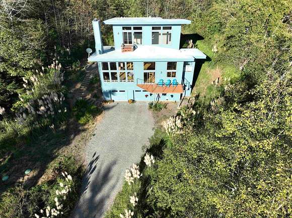 "Dream House with a Stunning Ocean View", nature all around, and the most beautiful beaches in the world. Spanning 4,342 sq. ft. this custom-built home sits perched atop 3.16 acres offering sweeping views of the Pacific Ocean to the west, the coastal range mountains to the south and east. It includes an impressive 1,242 sq. ft. 3-car garage that is fully insulated, drywalled, climate controlled, and plumbed with water. Positioned near the California/Oregon border, this enclave stands as one of the world's most naturally scenic locales. Completed in 2017, this three-story home, designed by renowned architect Jeff Mitchell, features three bedrooms and three full baths, including two primary suites - one on the main level and the other encompassing the entire upstairs. The large great room offers expansive floor to ceiling windows and towering 21 ft. ceilings. Situated within the gated Nautical Heights subdivision comprising only eleven homes, privacy is paramount, with no neighboring structures in sight. An enclosed greenhouse inside the home offers the perfect setting for cultivating culinary delights or nurturing orchids. The interior exudes warmth and sophistication, with knotty pine ceilings, hardwood floors, custom cherrywood cabinetry, and 3-billion-year-old granite countertops. There are three outside decks with spectacular panoramic views. The airport is only twenty minutes away and has flights to Oakland and Los Angeles. You truly must see this beautiful home to appreciate its exceptional qualities and serene surroundings! The give back $5000 to the buyers to pay for paving my driveway if it is not done before selling. Ask about the 3D video!
