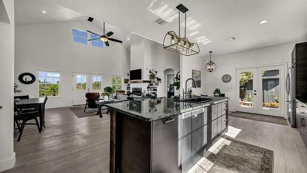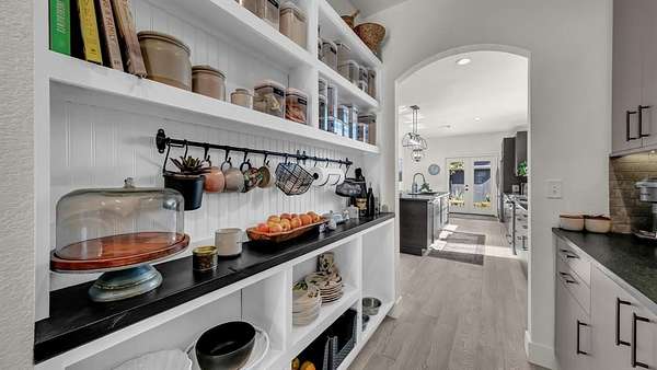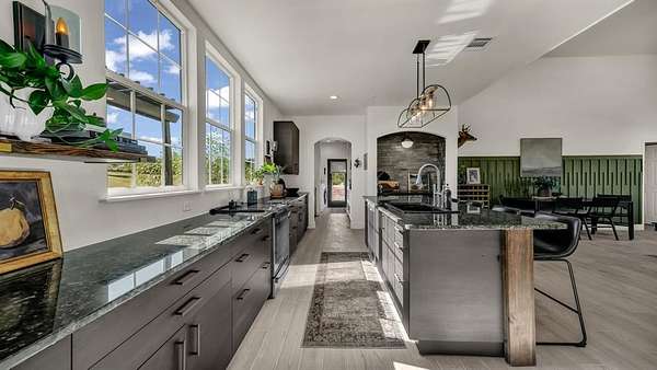 - Cathedral Ceiling(s), Decorative Lighting, Eat-In Kitchen, Flat Screen Wiring, Granite Counters, Kitchen Island, Natural Woodwork, Open Floorplan, Pantry, Sound System Wiring, Vaulted Ceiling(s), Wainscoting, Walk-In Closet(s), Wet Bar