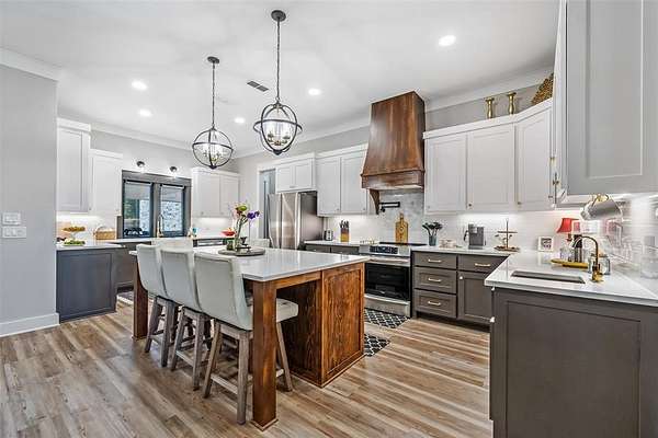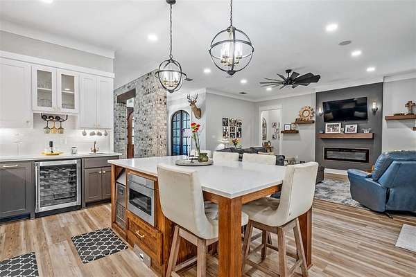 - Built-In Wine Cooler, Cable TV Available, Decorative Lighting, Eat-In Kitchen, Kitchen Island, Open Floorplan, Pantry, Vaulted Ceiling(s)