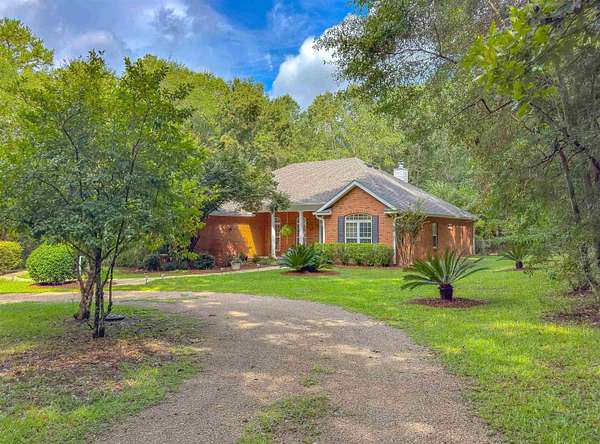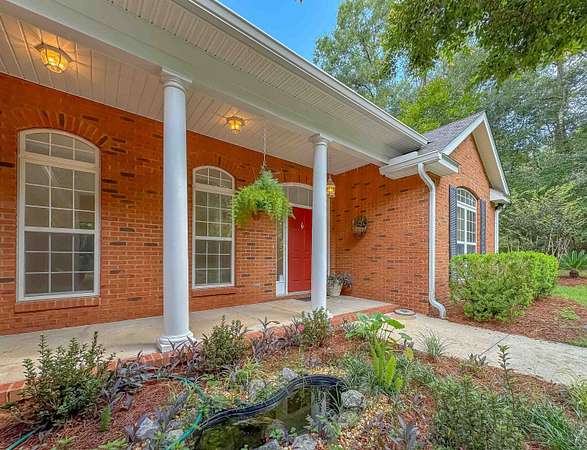 Experience the tranquility of nature in this beautifully maintained three-bedroom, two-bath (plus office) brick home situated on 5 private acres in the sought-after, gated Lake Tallavana community. Offering the perfect blend of serene retreat and convenient location, this 2,258 square foot, single-story residence features an inviting, split floor plan with hardwood floors in the main living areas and a formal dining room for entertaining. The spacious kitchen is equipped with ample cabinet space and a bar area, while the generous living room-with its cozy gas fireplace-provides a warm, welcoming space for gatherings during cooler weather. An additional flexible room awaits your personal touch, ideal as a den, family room, or home office. Step outside to enjoy the peaceful ambiance of the property, including a fenced backyard, a relaxing front porch perfect for rocking chairs, and a screened-in back porch ideal for unwinding in a natural setting frequented by local wildlife. The home also boasts an attached two-car garage, a greenhouse, a winding circular driveway, and access to a private community boat ramp. Built in 2001 and lovingly cared for by its original owners, this home offers exceptional privacy and a truly relaxing lifestyle in one of the area's most desirable neighborhoods.