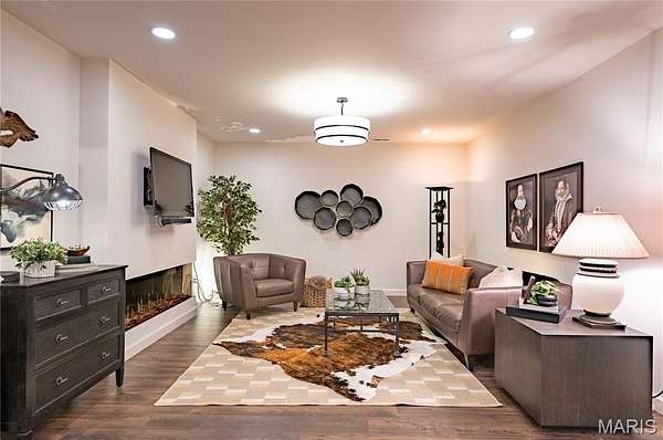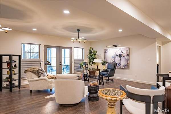 The finished lower level is designed for both entertainment and leisure. It includes a well-appointed kitchen area with a wet bar, two custom under-counter refrigerators, a microwave, and plenty of space to dine, play, and unwind. An additional bedroom features peaceful wooded views and access to a beautifully finished bathroom.