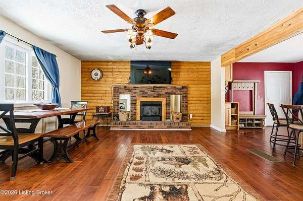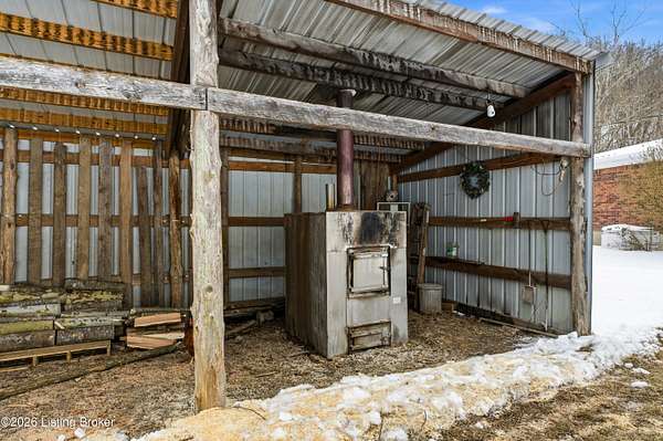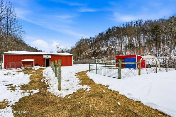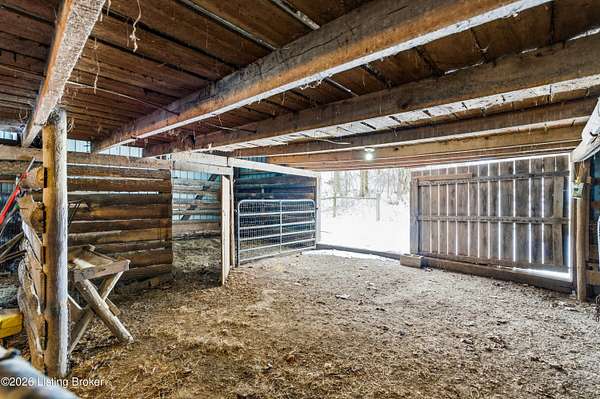 Beautifully maintained property situated on 8.366 acres, thoughtfully set up for livestock and country living. The land features three fenced pastures with no-climb horse fencing, a barn with stalls, tack room, and hay loft, plus three chicken coops. A small pond approximately 12 feet deep at the center. Two separate entrances provide convenience-one with a bridge near the barn for easy livestock and feed access, and a second gated entrance with electric gate and remotes leading directly to the home and garage. Additional outbuildings include a tractor shed with dog kennel, wood shed for the outdoor wood boiler, pool shed, greenhouse, and established garden area. Enjoy summer days in the 24-foot round above-ground pool, complete with updated liner, pump, and Rhino pad. The seller has successfully raised horses, chickens, and alpacas on the property. The home is a 3-bedroom, 2-bath ranch with a side-entry 2-car garage and finished basement. A covered front porch welcomes you into a spacious open great room featuring updated hardwood floors throughout the kitchen, living room, and hallway and a wood burning fireplace. The kitchen update offers a large center island with granite countertops, updated cabinetry, and modern finishes. The main level includes three bedrooms, laundry and two full baths. The finished basement expands the living space with a large family room, wood-burning fireplace, full bath, laundry, a room previously used as a fourth bedroom, and a home office with updated egress window. The home features two wood-burning fireplaces, a metal roof on both the home and garage, and numerous updates including kitchen update, flooring, paint, light fixtures, mantle, and barn door accents. Heating options include an electric furnace as well as a piped outdoor wood boiler that can heat the home, garage, and water heater - offering flexibility and efficiency. A rare opportunity to own a move-in-ready home. Quiet peaceful country living, plenty of deer roaming on land, great place to raise your animals and enjoy the country way of life! Seller offering a 1 yr limited home warranty.