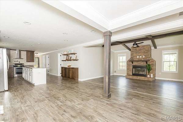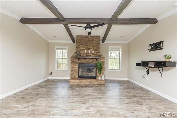 Welcome to 150 Dubuque LN, this inviting residence in Jefferson County, just off of Hwy Y in Hillsboro, offers a wonderful opportunity. Built in 2021, this manufactured home offers a chance to own a modern property in a secluded area with ample acreage and NO restrictions. Hidden away on a private road and surrounded by over 10+/- acres of scattered timber and gently sloping topography, this home offers the best of both worlds: quiet seclusion within an hour of STL. The many trails within the property provide easy access to the four corners of this rectangular tract, making hunting in your backyard a dream come true! The home is spectacular, boasting 1980 sqft in 3 beds and 2 baths with a beautiful custom stone fireplace in the living room. The kitchen is equipped with matching stainless steel appliances, custom cabinets, and a custom 9-foot-long island! Don't forget about the pool in the backyard for those long, hot summer days. This property has it all and is certainly move-in ready! Don't miss your chance at Mid-Missouri freedom!