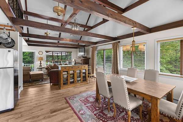 - Bedroom On Main Level, Cathedral Ceilings, Ceiling Fans, Country Kitchen, Dining Area, Furnished, Main Level Primary