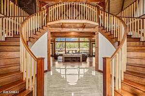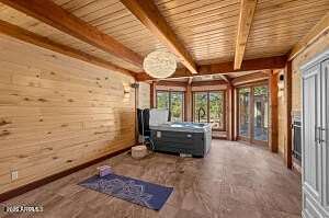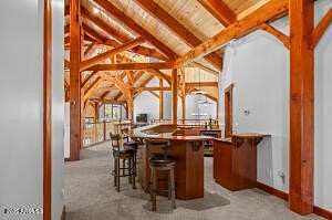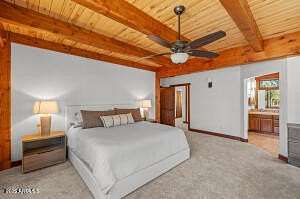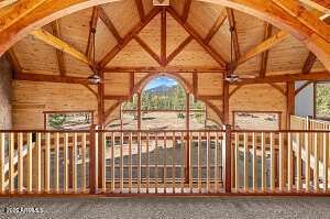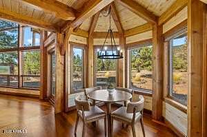 Welcome to 150 Flat Rock Ridge, a stunning custom Timber Frame home on 6 beautiful acres with majestic mountain views. Created by an engineer as a loving gift to his wife and family, this 6,000 sf masterpiece is both home & work of art. The entryway is breathtaking with extraordinary views framed by double curved staircases and beams above. The greatroom is the essence of indoor/outdoor design; a 35-foot vaulted ceiling & picture windows allow you to experience natural beauty - the first greens of spring, the lush vibrance of summer, glorious autumn palettes and white, snow capped mountains from every vantage point in your home. The spacious kitchen with breakfast area is upgraded with quartz counters & new appliances. It will be your favorite place for friends and family to gather, enjoying both your culinary delights and the exquisite setting. Relax, stream, play pool or cards, have fun at the bar, and cheer for your teams in your upper-level entertainment area, designed as your private, luxury mountain lodge. Timber Frame construction means you can re-imagine the spaces, add or take out walls and easily curate your personalized, custom retreat. The outdoor living areas must be experienced in person to be appreciated. Sit quietly or host a party of 50 on your back patio in the presence of fields, birds, ponderosa pines and Mount Humphreys. Are you an equestrian lover? With 6 stunning acres you can create the equestrian paradise of your dreams. More than six types of wood were carefully chosen for each feature. The timber frame itself is old growth Douglas fir; the ceilings are Aspen (a nod to our location); floors and trim are all Jatoba, aka. Brazilian Cherry, one of the hardest choices for wood flooring; interior doors are Alder. The custom cabinets are Cherry and the balusters are Maple. A shared deep aquifer well, radiant heat, a 4 car tandem garage & additional RV garage with cleanout and hookups, EV charging and large fenced dog run make this home not only beautiful but highly practical. Important Note: there is a 1700 sf +/- finished bonus room above the garage that is not included in the square footage of the listing! Use it as a shop, gym, art studio or extra living space. This spectacular home inspires endless possibilities in one of Northern Arizona's most picturesque settings.