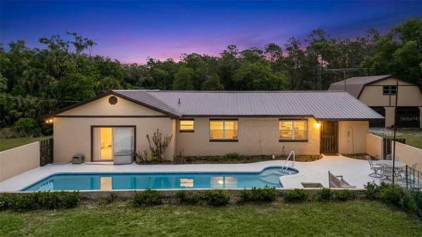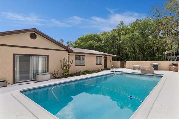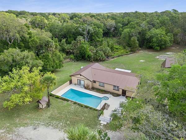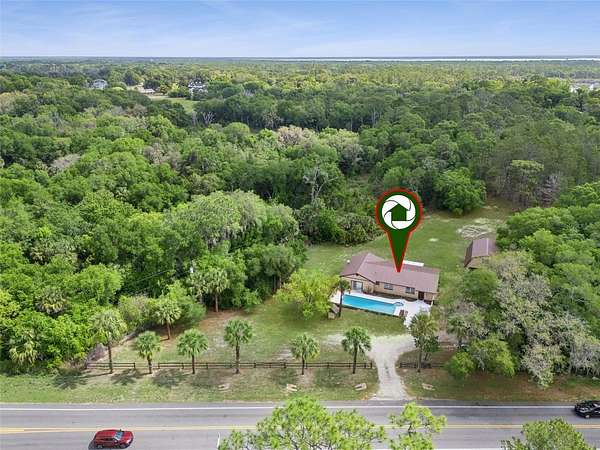 Welcome to Country Living at its finest! This spacious 4-bedroom, 2-bath single-family pool home sits on just over 3.4 acres in the sought-after Geneva Bubble area, offering the perfect blend of privacy, space, and convenience. Step inside to an open floor plan featuring large, flexible rooms—ideal for families and entertaining. The welcoming living room flows into a formal dining area, which connects seamlessly to the kitchen and overlooks the tranquil Florida room. Enjoy your morning coffee surrounded by views of the secluded, wooded backyard, where wildlife and peaceful nature walks await.