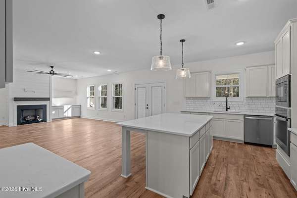 - Ceiling Fan(s), Entrance Foyer, Gas Log, High Ceilings, Kitchen Island, Master Downstairs, Pantry, Tray Ceiling(s), Vaulted Ceiling(s), Walk-In Closet(s), Walk-In Shower