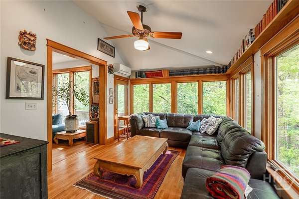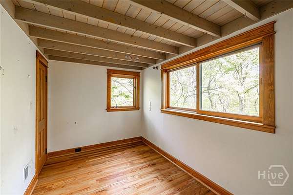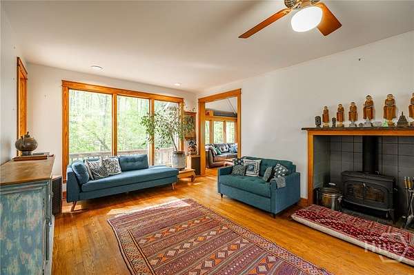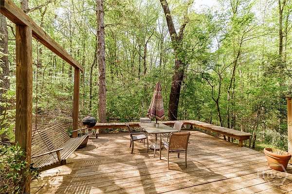 TWO LOTS. And a home that feels like a mountain retreat tucked in the heart of Athens. Surrounded by lush greenery, mature hardwoods, and buffered by the UGA Whitehall Forest, 150 Hidden Hills Lane sits on 2.23 acres, with an adjoining 3.02-acre lot included in the sale (140 Hidden Hills Ln), providing future possibility and genuine quiet that is getting increasingly harder to find. The home blends seamlessly into its surroundings with a metal roof, natural wood exterior, and forest views from every window. The property is a gardener's delight with a deer-proofed area featuring established blueberry bushes, muscadines and figs, along with five raised cedar beds ready for planting. With no neighbors in sight, the setting feels immersive and peaceful, living like a modern cabin in the woods but with an in-town location giving you the best of both worlds. Inside, the layout offers distinct spaces for living and working across 3,000+ square feet, including a finished lower level with bedroom, bath, and flexible space. Hardwood and tile floors run throughout, adding warmth and grounding the home in natural textures. Mini split systems in the sunroom and lower level keep every corner of the home comfortable year-round, and a tankless water heater means hot water on demand. A woodburning stove anchors the main living area, inviting long nights of conversation and music. Three bedrooms are located upstairs. The primary features three closets and a private balcony ideal for morning meditation or stargazing after dark. A lofted nook above one of the secondary bedrooms adds a playful and functional bonus space. Hidden Hills is located just minutes from dining and shopping in Five Points and Downtown Athens. The State Botanical Garden and Thomas Farm Preserve are right around the corner. UGA's Warnell School of Forestry facilities and the Veterinary Teaching Hospital are practically neighbors. Come see why Hidden Hills is one of Athens' best-kept secrets.