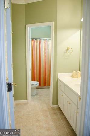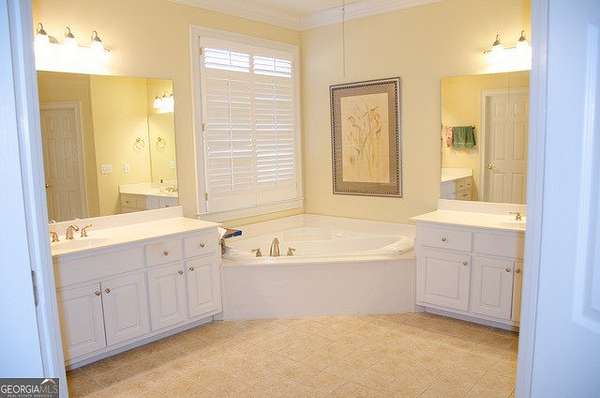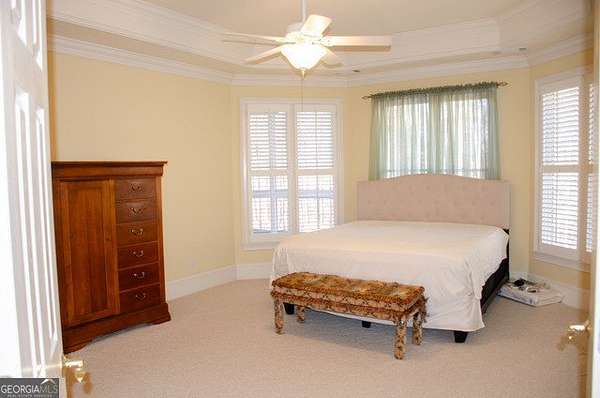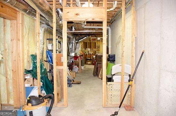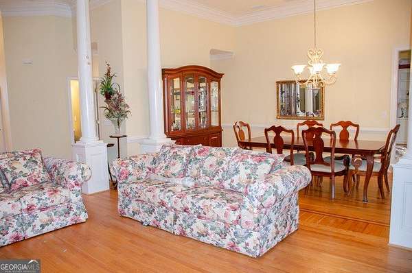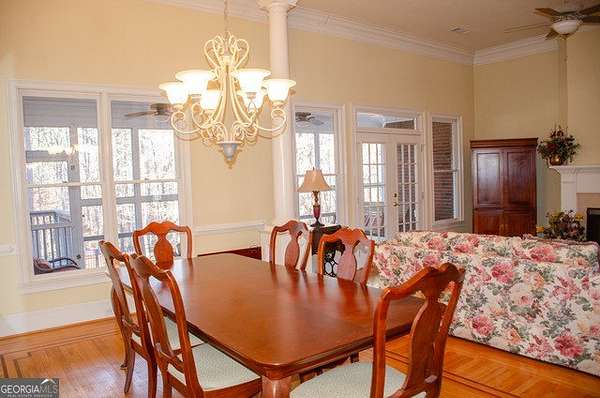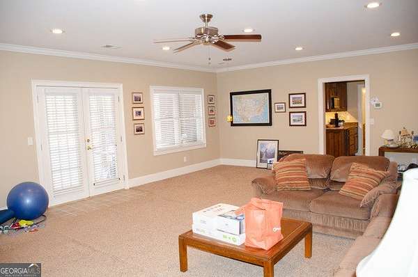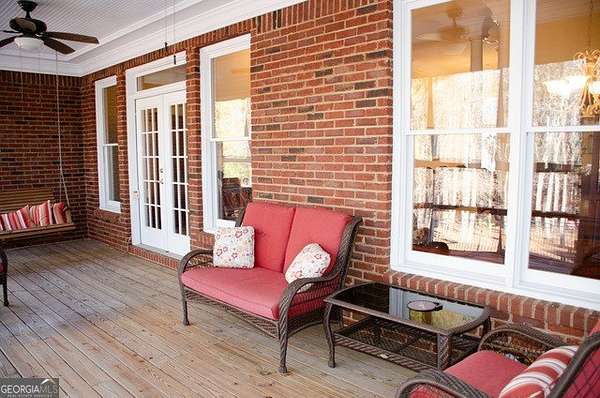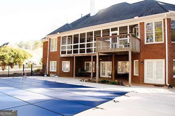 Four-sided brick home on a beautifully landscaped 2-acre cul-de-sac lot backing up to Big Haynes Creek. This spacious home offers 3 bedrooms, 2 full baths, and 1 half bath on the main level. The master en suite features his-and-her lavatories, a soaking tub, separate tiled shower, and walk-in closet. Secondary bedrooms share a bath with double lavatory and tub/shower combo. A central hallway includes a butler's pantry, half bath with pedestal sink, and a laundry room with utility sink. The kitchen features an island and breakfast area and opens to the keeping room with fireplace and built-in bookshelves. The family room, also with a fireplace, flows into the formal dining room, creating an inviting open layout. Just off the keeping room is a private bonus room with bedroom and full bath, ideal for guests, teens, or a home office. Outdoor living includes a screened-in porch overlooking the in-ground pool, with a lower patio leading directly to the pool area enclosed by an iron fence. The finished basement offers a family room, kitchenette, recreation room, and bedroom with cedar closet, plus multiple unfinished rooms for storage or future expansion. A nearly one-mile private walking trail thoughtfully designed by the owner winds through the property, offering a peaceful outdoor retreat. Three-car garage. Well-maintained grounds in a quiet, private setting.