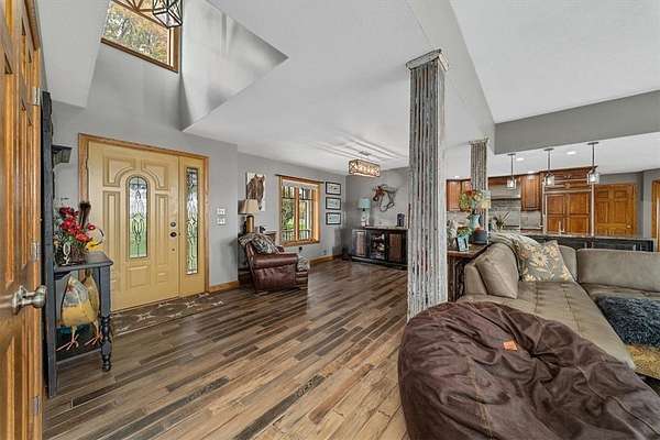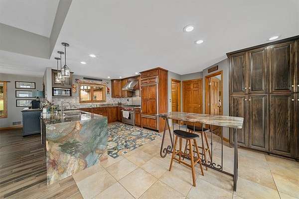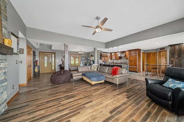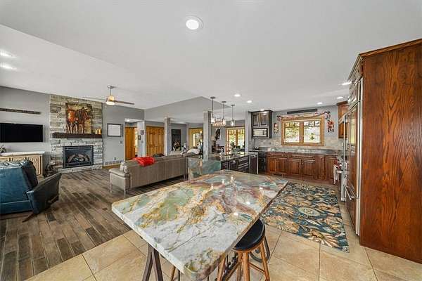 - Fireplace, Kitchen Island, Window Treatments