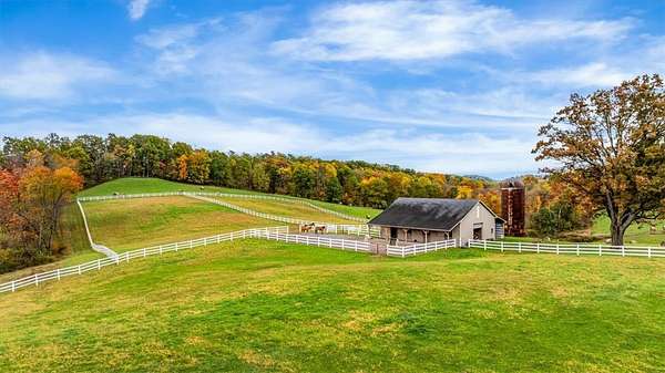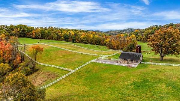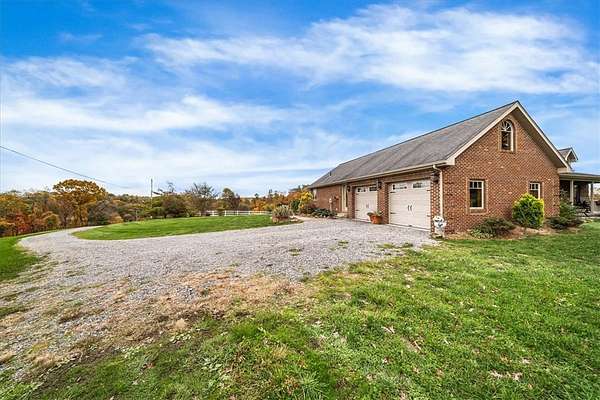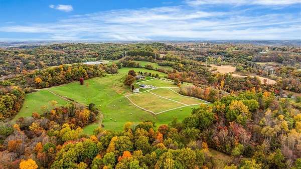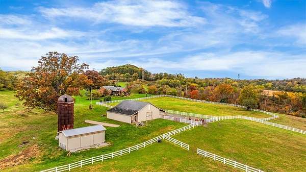 Welcome to 150 Holsing Lane, a Custom Momberger-built equestrian estate on 35 acres in Frazier Township, enrolled in the Clean & Green tax incentive program. This is the rare combo: high-end finishes, serious barn package, and trail access that feels endless, all behind a private driveway to serenity. The home is a 4-sided brick ranch featuring 2 covered porches, framed by unique perennial plants and shrubs that wrap the home in color and texture through the seasons. Step out back to unwind beside a peaceful koi pond and waterfall just off the covered porch. Koi can stay, making this outdoor space instantly relaxing the moment you arrive. Inside, the home offers 3 bedrooms, 2 full baths, and 1 partial bath with timeless materials throughout. You will love the beautiful ceramic tile throughout, including 18" ceramic tile in the kitchen, paired with solid oak and rich wormy oak cabinetry. The chef’s kitchen shines with Armina Arturo Blue exotic quartz countertops and a dramatic matching Tartufo waterfall island, plus premium appliances including a SubZero refrigerator and Wolf commercial stove. The laundry room is finished with Magma Gold granite and a commercial Speed Queen washer, while the primary spa bath features Atlas granite for a true retreat feel. Cozy up to the 2023 gas fireplace with a stacked stone grand fireplace, and enjoy next-level comfort from the dual fuel heat recovery system, air purification system with humidifier, and AOG propane energy setup. The lower level adds real lifestyle value with a dog washing area, plus plumbing for an additional full bath already in place behind the TV in the basement. You also have a 2-stall attached SUV garage and room for everything that comes with a land lifestyle. Your wellness zone is ready: a new cedar Finlandia sauna, hot tub, and gym system create a private resort vibe at home. The 160’ water well delivers crisp, fresh water, and the grounds feature fruit and nut trees that make this property feel established and special. Equestrians, this is the one. The custom 36x48 6-stall barn is built for function and longevity, featuring Dutch doors, new rubber mats, tack room, and automatic heated waterers. The loft stores approximately 300 bales of hay. A crushed limestone paddock sits right off the barn and can be divided from the stall doors for easy turnout. There are 3 heated automatic waterers outside the paddock doors, and one outside in the paddock, allowing horses to come in from pasture for clean, fresh water. 10’ gates lead out to three pastures totaling approximately 8 acres, with additional cleared acreage that can be fenced for expanded use. Need more flexibility? The second outbuilding (15' deep x 34' long) is currently used for equipment storage, has electric, and can easily be repurposed for additional stalls or hay storage. Bonus: the chicken coop stays. And the location is a dream for riders. White vinyl fencing spans the acreage, and the property provides access to miles and miles of trails that let you ride for hours. You are also extremely close to Deer Lakes Park, expanding your trail options even further. Convenient to everyday needs: approx. 2.8 miles to Deer Lakes High School, approx. 3 miles to Allegheny Valley Hospital, approx. 19–20 miles to Downtown Pittsburgh (15222), and approx. 35–38 miles to Pittsburgh International Airport, with shopping nearby at Pittsburgh Mills. Family compound opportunity: An additional neighboring home is also available for sale, offering 3 bedrooms, 2 full baths, a 2-car garage, and 2.8 acres, ideal for multi-generational living, staff housing, guests, or a true estate-style compound. If you want luxury finishes, real equestrian infrastructure, and peaceful acreage, 150 Holsing Lane is your Western PA unicorn. Schedule your private tour and bring your boots. PLEASE DO NOT DRIVE UP DRIVEWAY WITHOUT AN APPOINTMENT! Guard Dogs on Premises.