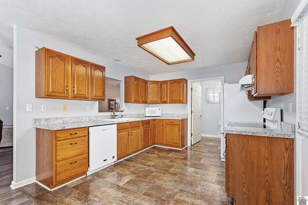 Escape the hustle without sacrificing convenience! Nestled in a private, quiet country setting yet just minutes from town, home offers the perfect blend of peace, space, and comfort. Sitting on 3+ acres, the property provides rare privacy and endless possibility with enough land to even build a second home. The huge, usable backyard is ideal for entertaining, gardening, or simply enjoying the outdoors, and the back deck off the living area is perfect for grilling and gathering. Inside, an open foyer welcomes you into a bright, open floor plan with vaulted ceilings and generously sized bedrooms. The 2-car attached garage adds everyday convenience. Big-ticket updates already done...roof replaced 2-3 years ago, plus water heater, appliances, and fresh paint all updated in 2021. This one is perfect for first-time buyers or those looking to downsize. Privacy and acreage like this rarely hit the market, so schedule your showing today!
