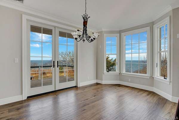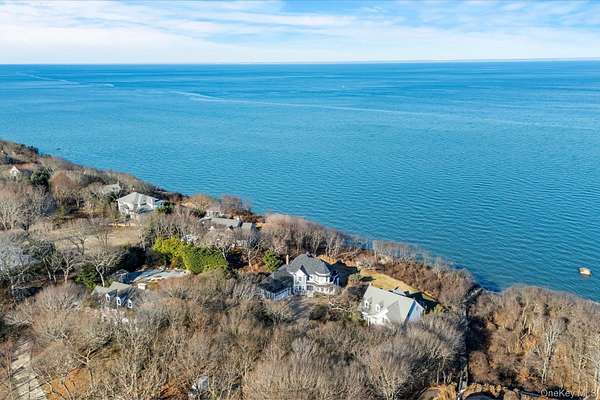 Stunning Long Island Soundfront home set on 1.58 acres with sweeping water views, dramatic sunsets, and complete privacy from its elevated position. This custom residence features a wraparound second-floor balcony, a welcoming front porch, and a rare 2+ car attached garage along with an expansive lower-level garage and storage area that can accommodate up to 4 vehicles--perfect for an antique or collector-car enthusiast. With room for a pool and community beach access just one property away, this home offers the ultimate waterfront lifestyle.