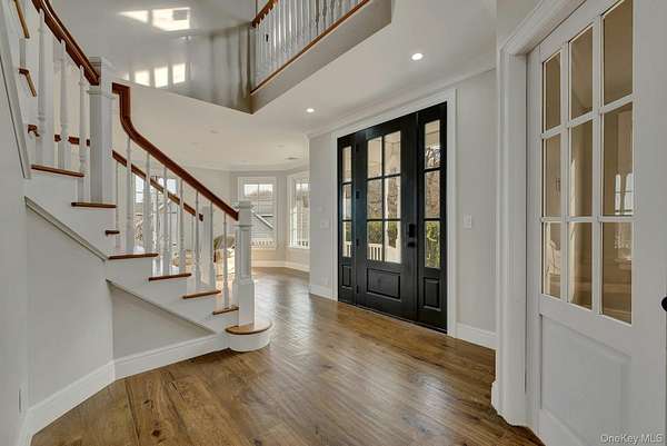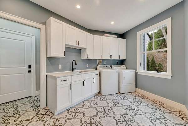 Every major system has been modernized. Improvements include all new Andersen 400 Series casement windows with bluestone sills; new Andersen A-Series patio doors and a new 8-foot E-Series balcony slider; new James Hardie Boothbay Blue siding with Azek trim; a new GAF Camelot 50-year roof; new balcony flat roof; new gutters and soffits; and a new Fimbel architectural garage door with opener and epoxy flooring. The home was converted from oil to gas and now features a new gas boiler and hot water heater, cast iron radiators upstairs with individual thermostats for each bedroom, and a new central air conditioning system on the first floor. Additional improvements include pre-wiring for an alarm system, an exterior camera system, a brand-new fiberglass front door with keyless entry. A separate laundry room with washer, dryer and tile flooring completes the interior upgrades.