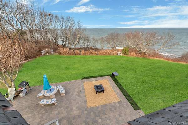Outdoor living is enhanced by a beautiful mahogany waterside deck and the home's incredible vantage point over the Long Island Sound. The property enjoys membership in Baiting Hollow Estates, which provides a gated and maintained staircase to 150 feet of private Sound beach shared by only fourteen homes. HOA dues are just $750 per year and include beach access, gate and lock maintenance, and upkeep of the community circles.