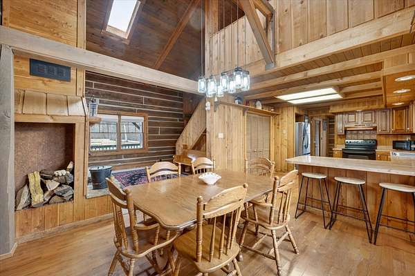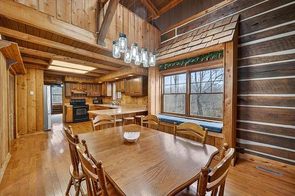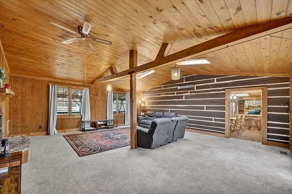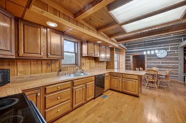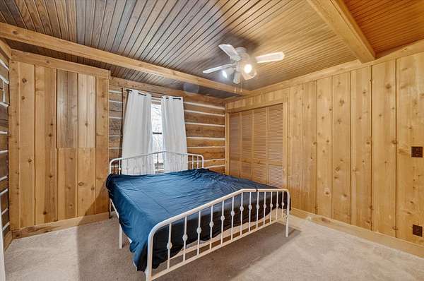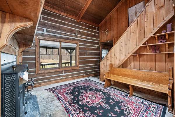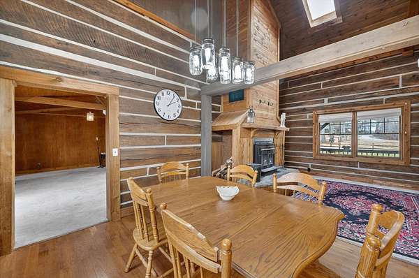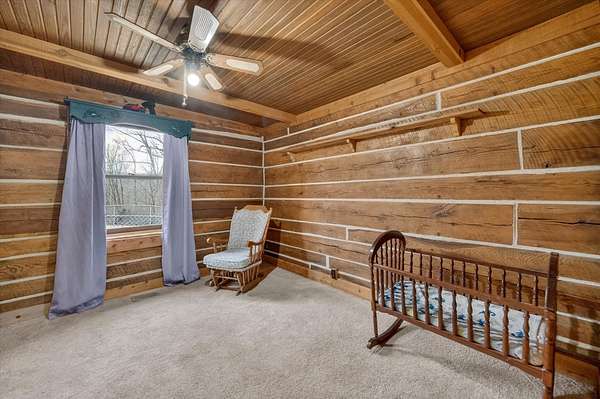 Nestled in the woods of Henry County, you will find this lovely log home sitting on 26.35 acres boasting privacy and charm for the nature lover or hunter. Home offers 3 bedrooms, two baths, kitchen with dining area living room and family room, 2 fireplaces with wood stoves and the list goes on and on. The detached two-car garage has a separate loft with loads of possibilities for a man cave or playroom. Enjoy the spacious rear deck overlooking the stocked pond and recently installed above ground pool while preparing dinner for the family, sipping your morning coffee and planning the day or enjoying the afternoons on the front porch as you reflect on the beauty. There is a storage shed for your boat or ATV and there are several trails for nature watching or 4 wheeling. You won't believe the abundance of wildlife of all types for your entertainment and the seller has proof of it! Imagine as spring greets you with the natural beauty of flowers and gardening. This property has so much space, storage, and everything a sports or nature minded family could need.... It's all wrapped up for a new family to enjoy as much as the family moving has. Hurry to see before it gets way