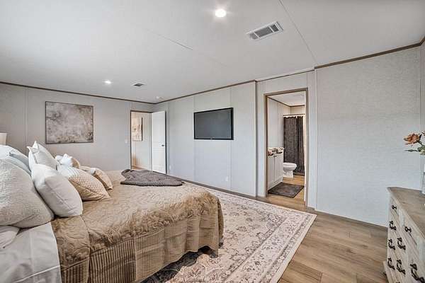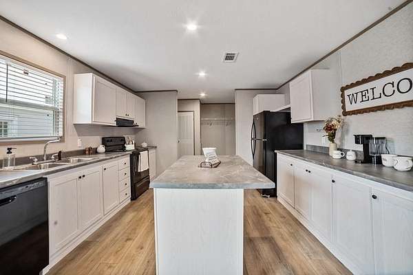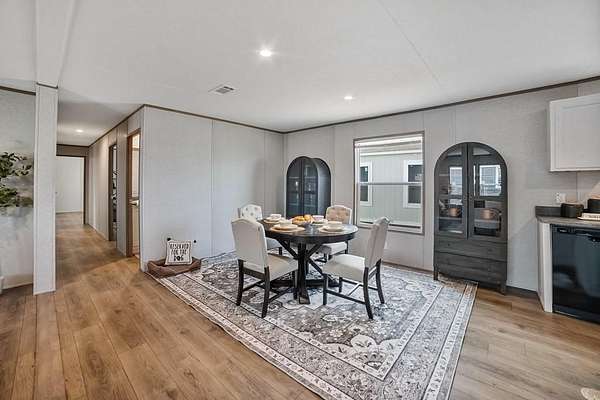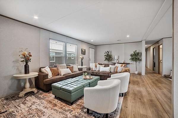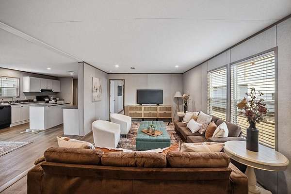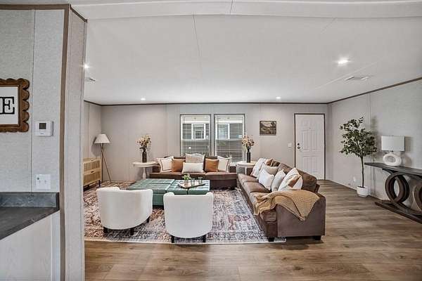 Silver Spurs Ranch welcome you to, quiet mornings, stunning sunsets, and wide-open possibilities that are part of everyday life. Step inside to an open-concept floor plan designed to impress. Recessed lighting creates a warm, inviting atmosphere, while the modern kitchen serves as the heart of the home — complete with a refrigerator, dishwasher, range, spacious island, and abundant cabinetry. Whether you're entertaining guests or enjoying a quiet evening at home, this space is made for gathering. The primary suite offers a private retreat with a walk-in closet and a relaxing en-suite bath. Three additional bedrooms provide the flexibility you need for guests, a home office, gym, or hobby space. Outside, you'll find even more to love: a 2-car carport, smart panel skirting, large decks, stylish wainscoting, rain gutters, private well and septic, and the added confidence of a 1-year manufacturer’s warranty. With room to roam, room for animals, and room to truly live, this property delivers the perfect blend of comfort, style, and freedom.