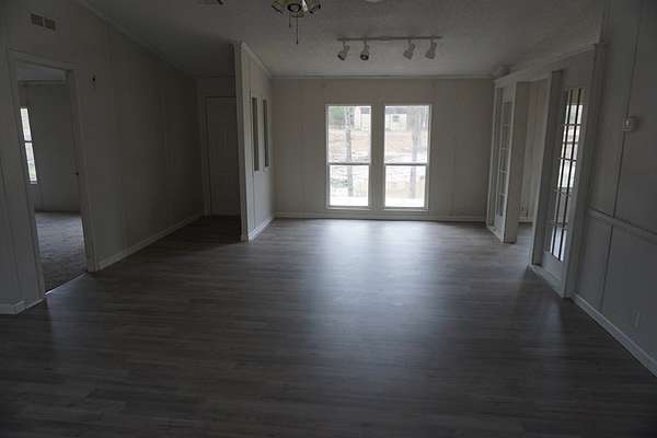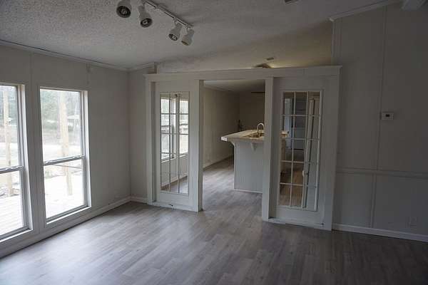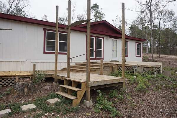Est $1,078/mo3 bed 2 bath mobile home on over 6 acres. New roof 2025 completely painted inside and out new flooring throughout big deck. Property has an additional septic system and electric ready to go for an additional homesite or RV site. 2 out buildings small pond private water well.