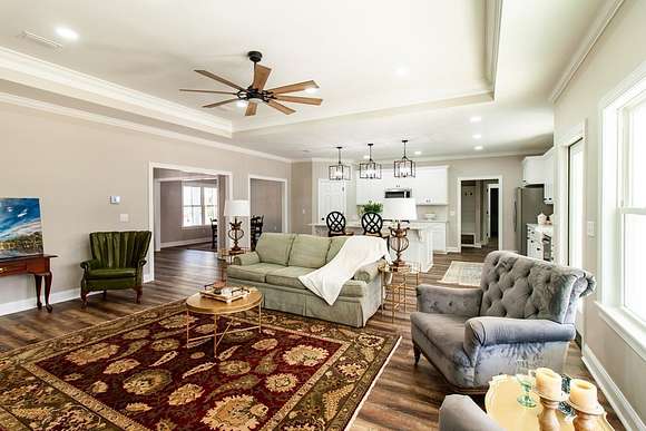 Southern Charm with Modern Luxury - New Build on 6 Acres and So close to beautiful downtown Bainbridge! Welcome to 150 Rivervale Drive - a breathtaking new construction that offers the best of both worlds: upscale finishes and peaceful, country living. This 2,547 sq ft home features 4 spacious bedrooms, 3.5 baths, and is nestled on a private 6-acre lot in the desirable Rivervale community just across the street from the sparkling Flint River but No Flood insurance needed. Step inside to find a bright, open-concept living area with soaring tray ceilings, luxury plank vinyl flooring, and a custom kitchen that's as functional as it is beautiful. From the oversized island to the crisp white cabinetry and designer lighting, every detail has been thoughtfully selected. The primary suite is a true retreat with a spa-inspired en-suite and walk-in closet. The open floor plan and a cozy fireplace create a warm and welcoming space for both everyday living and entertaining. Out back, enjoy the serenity of your wooded acreage from the large covered porch - complete with a TV mount, perfect for relaxing evenings or game days with friends. All of this comes with the added bonus of convenience--just minutes to historic downtown Bainbridge and an easy commute to Tallahassee, Albany, and Thomasville. With a spacious 2-car garage, upgraded finishes throughout, and room to roam, this home is everything you've been waiting for. Don't miss your chance to own a slice of Rivervale luxury call your favorite realtor to schedule a showing.