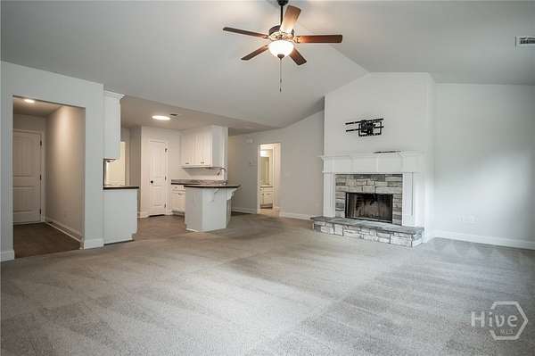 Tucked within the quiet countryside of Madison County on a low-traffic street, this nearly new Craftsman home-built in 2023-offers the perfect blend of privacy, comfort, and effortless entertaining. Set on an expansive 1.50-acre lot, the property captures a peaceful, natural setting while showcasing a move-in ready home. A welcoming rocking chair front porch sets the tone, leading into a spacious, vaulted-ceiling great room with a stone-accented fireplace setting the stage. Notable Interior features include durable luxury vinyl plank flooring, plush carpet, 9+ foot ceilings, a refined trim package, and a cohesive, well-chosen color palette throughout. Natural light pours in through multiple windows, enhancing the home's warm and inviting atmosphere. Designed with entertaining in mind, the open-concept seamlessly connects the fireside living area to a well-equipped kitchen featuring ample cabinetry, generous counter space, stainless steel appliances, pantry and an easy flow into the formal dining room-perfect for hosting dinner gatherings. A desirable split-bedroom floor plan ensures privacy, with secondary bedrooms and baths thoughtfully positioned on one side, while the owner's suite is quietly tucked away on the other. This private retreat offers generous space, a walk-in closet, and a beautifully finished ensuite bath designed for comfort and relaxation. Outdoors, the serene setting continues with a private rear patio overlooking the expansive backyard-an ideal space to unwind and take in the peaceful surroundings. Offering space, privacy, and mint condition, this Madison County home delivers a the perfect opportunity for sweet country living.