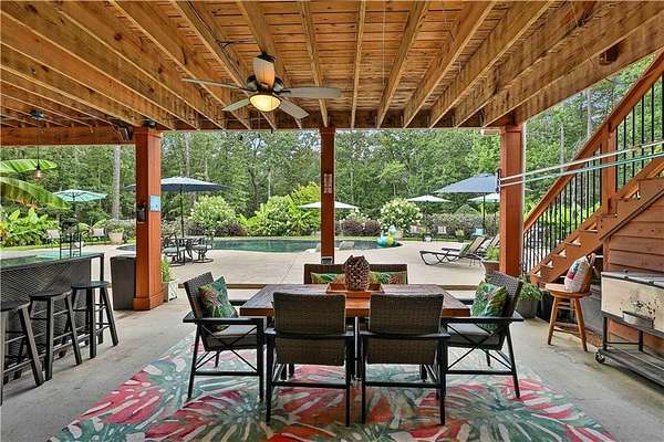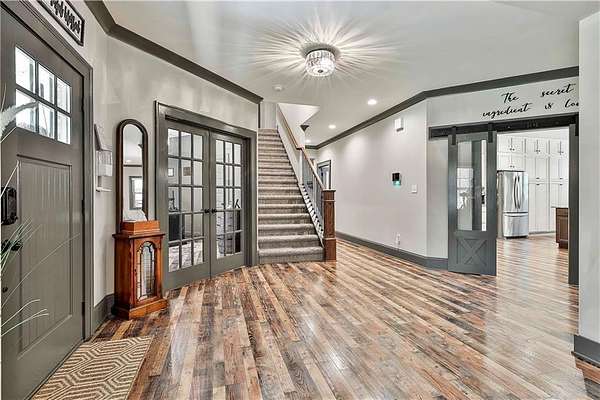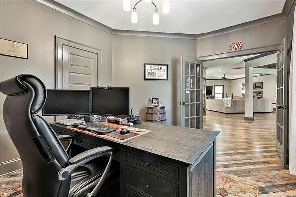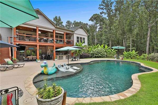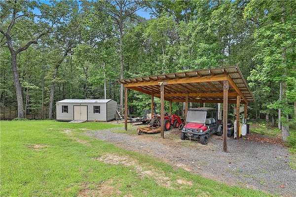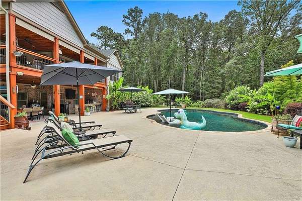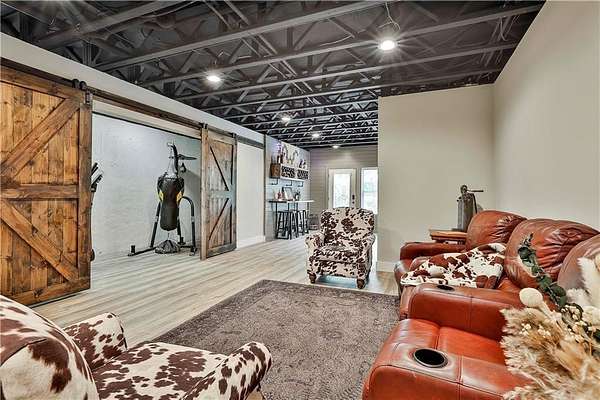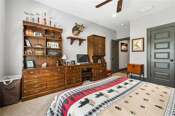 WOW, REDUCED $200,000! There's just so much to love about this one-of-a-kind custom ranch home with a FULLY FINISHED TERRACE LEVEL and located on 17.7 PRIVATE WOODED ACRES with 4-WHEELING TRAILS and NATURAL CREEKS. With 6 bedrooms, 4 FULL BATHS, and 2 HALF BATHS spread across 6,780 SF and a 24X42 SALT WATER POOL makes this home AN ENTERTAINER'S PARADISE! Built with quality in mind this 4-sided brick with stone accents, cement siding, 30-YR ARCHITECTURAL SHINGLED ROOF, SPRAY FOAM INSULATION, ENERGY-EFFICIENT WINDOWS, and 3 HVAC systems. Exciting extras like a BONUS APARTMENT OVER THE GARAGE, 17X7 TERRACE SAFE ROOM, EXERCISE ROOM, INCREDIBLE BAR AREA, DOG RUN, POOL BAR and so much more! Inside you will find 9-foot smooth ceilings on every level, a formal dining room with a coffered ceiling, and a spacious family room ready for gatherings. The chef's kitchen offers stone countertops, brick backsplash, COMMERICAL-GRADE STAINLESS STEEL APPLIANCES, gas cooktop, double ovens (one convection), CUSTOM VENT HOOD, POT FILLER, breakfast bar, and a breakfast nook. The main-level offers a private office, two oversized secondary bedrooms that each have their own vanities and share a jack-and-jill style shower, and a built-in work/computer station. The MAIN LEVEL PRIMARY SUITE (there is a second one on the terrace level), in this split bedroom plan, is tucked away for maximum privacy. It features custom barn doors leading into a spa-like bath with his-and-her vanities, a makeup station, dual closets, and an oversized tile shower with bench and dual shower heads. In the upstairs BONUS APARTMENT SPACE, you'll find a huge en-suite bedroom with its own full bath and sitting area-perfect for guests or multi-generational living. With it being over the 873 SF GARAGE and insulated with sound resistant FOAM INSULATION, you can make all the noise you like without disturbing the rest of this glorious estate. The finished terrace level includes the SECOND PRIMARY SUITE with full bath and walk-in closet, an expansive family and billiard room with fireplace and built-ins, private office/flex room area (ideal for a FUTURE WINE CELLAR AND SIPPING ROOM), and a half bath (with easy access to pool area). Off the main area is another great entertaining space with poker table area and a custom bourbon/wine BAR with full-size fridge, ice maker and sink (all included). There is also a FITNESS ROOM which provides an additional flex space or storage area. The SAFE ROOM features a CUSTOM VAULT DOOR, custom cabinetry, and two additional gun SAFES inside (all included). Step outside to your private retreat featuring a 24x42 SALT WATER POOL with SUNNING DECK, OUTDOOR KITCHEN AND BAR, spacious back deck with knotty pine ceiling, FENCED DOG KENNEL, storage shed, and a STORAGE BUILDING. Large open lawn areas are great for playing football/soccer or starting up some wonderful gardens. The 873 SF 3-CAR GARAGE includes plenty of storage and the parking pad provides parking for all your guest and family. There is even a BASKETBALL COURT with fencing around it. ALL THAT AND 15 MORE ACRES of WOODED WILDERNESS PARADISE (total of 17.1 acres)! Explore the network of FOUR-WHEELING TRAILS to the different CREEKS and clearings. Ideal for exploring, CAMPING, HUNTING, riding, wildlife watching, target practice, or whatever you like. NO HOA! So much opportunity and privacy! This estate is the perfect blend of luxury, function, and nature while being convenient to local shopping and can be the dream home you are looking for your family for ages!