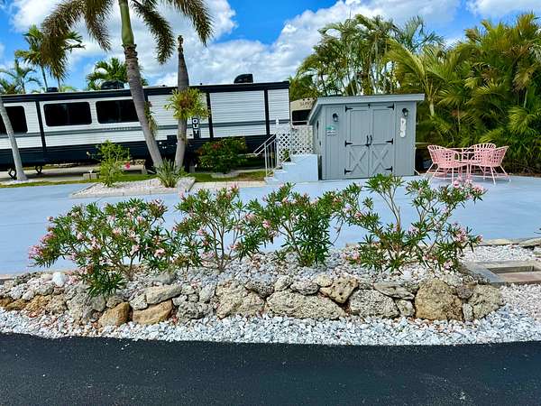 Extra Large Corner RV Lot in Outdoor Resorts Chokoloskee, lot includes a boat dock/ slip in the South marina of the resort directly across from the RV Lot. Beautiful view of Chokoloskee Bay from this interior corner lot! Spacious RV Lot has full hookups with 30 & 50 amp electric service, water, sewer, cable tv and WIFI and storage shed. Professionally Landscaped with beautiful tropical palm trees and colorful hedges. Relaxing Bay views from this corner lot and a short walk away from one of the three pools in the resort. Resort amenities include 3 swimming pools, 3 hot tubs, 3 bath facilities, 2 laundry facilities, rec hall, fitness room, boat ramp, 2 tennis courts. Spend your day relaxing by the pool or enjoy a first class fishing trip, sightseeing , canoeing and kayaking. Chokoloskee is famous to anglers and nature enthusiast, with the uniqueness of the Ten Thousand Islands Nation Park, Everglades National Park and The Gulf of Mexico. This is a must see! Condo Dues $331.00 month
