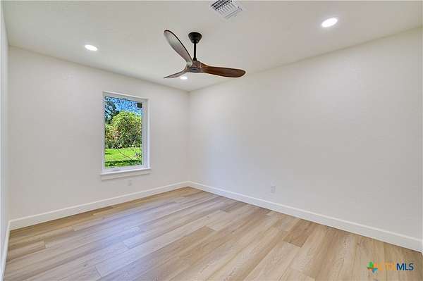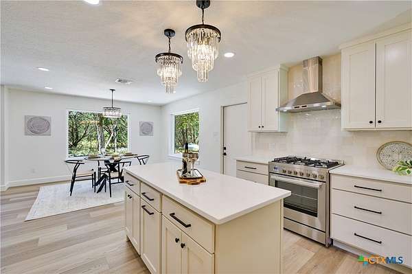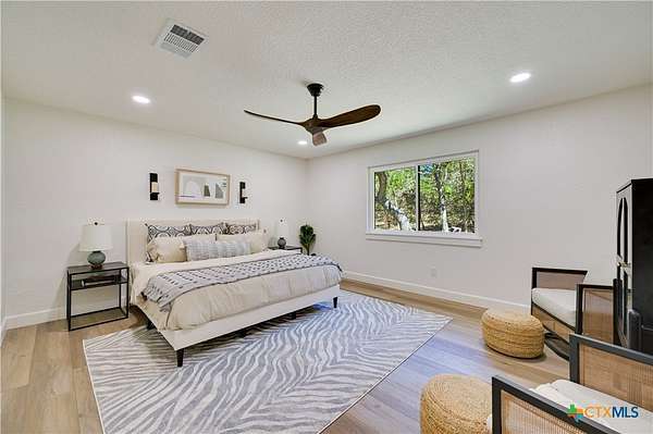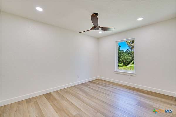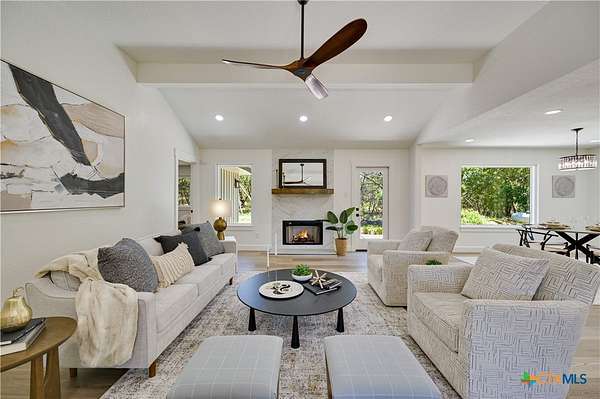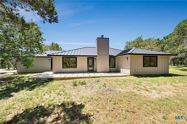 STR's allowed. This beautifully remodeled 3-bedroom, 2-bath home with an attached 2-car garage sits on a serene 2.5-acre lot backing to a ranch, offering both privacy and views of nature. The home features a standing seam metal roof and fresh interior and exterior paint for a move-in-ready experience. Step through the double front doors into a welcoming foyer and take in the open floor plan, highlighted by hardwood floors and a cozy wood-burning fireplace. Large windows in the living and dining areas fill the space with natural light and offer peaceful views of the surrounding landscape. The kitchen is a chef's delight, complete with stainless steel appliances, a center island, stone countertops, abundant cabinetry and pretty pendants that add that sparkle. A convenient laundry area and pantry is located just off the kitchen. The spacious primary bedroom includes room for a seating area, while the ensuite bath features a double vanity, stone counters, and an oversized walk-in shower. Two additional bedrooms are equipped with ceiling fans and share a stylish secondary bath with a large shower. Off the back of the home is a cut limestone paver patio great for morning coffee or backyard barbeques. Enjoy the quiet of country living just minutes from downtown-this home offers the best of both worlds.