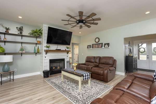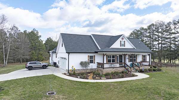 Welcome to this STUNNING, immaculate farmhouse-style home nestled on 5 beautifully landscaped acres in a peaceful country setting. From the moment you step into the inviting foyer, you'll be amazed at all this home has to offer. Designed for comfortable one-level living, this residence features three spacious bedrooms and two and a half baths, blending modern upgrades with timeless charm. The heart of the home is a state-of-the-art kitchen equipped with brand-new stainless appliances, including a sidekick refrigerator and freezer with ice maker, a gas range w/ convection oven and air fryer, a built-in microwave and quartz countertop. A charming coffee bar adds the perfect touch to start your mornings. Just beyond, the living space invites you to relax by the cozy gas log fireplace-ideal for those chilly winter nights. The home also offers a private finished bonus room with gorgeous wood flooring, perfect for crafting or working from home. The spacious primary suite features elegant trey ceilings, a luxurious private bath with a walk-in tile shower, soaking tub for relaxation, and double closets for ample storage. A formal dining room provides space for gatherings, while the separate laundry room includes a washer, dryer, and additional storage. Step outside to truly appreciate all this property has to offer. Unwind on the screened-in back porch or entertain family and friends at the gazebo grill/fire pit area, where you can enjoy evenings under the stars making s'mores and sharing stories. Gardening enthusiasts will love the raised beds, and with plenty of open space, there's room to bring horses and embrace farm life. The double carport provides covered parking & a storage shed offers additional space for tools, equipment or hobbies. Conveniently located just minutes from Watts Bar Lake, you'll have easy access to boating, fishing, and waterfront dining at nearby marinas. With too many updates to mention, this exceptional property is truly a MUST SEE!!