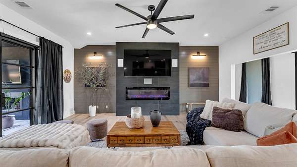 This HUGE property awaits a new owner! 5 bedrooms, 3.5 bathrooms, 1 office, and 1 flex room with an entirely separate living quarters all on 3.5+- Acres in OAK VISTA! Experience refined living in this masterfully crafted custom home, nestled on a prime 3.5+- acre corner lot in the Oak Vista community where you will not pay city taxes! Boasting 5 spacious bedrooms and 4 bathrooms, this residence blends sophistication with comfort, offering an impressive array of modern features and high-end finishes throughout. The open-concept layout creates warm, inviting spaces ideal for entertaining or everyday living. A private Casita guest house elevates this property further, complete with a full kitchen, a stylish loft bedroom, and a private bath-- perfect for hosting guests in total comfort or as a luxury retreat. Dual garages offer ample space for vehicles, hobbies, or storage, while the expansive grounds provide serenity, privacy, and endless potential. A rare opportunity to own a statement property in one of the area's most desirable neighborhoods. Luxury, space, hill country and design all wrapped in one!