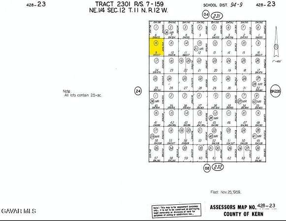 Est $138/mo2.5 acre industrial lot close to the Mojave airport, Hwy 58 & the 14 Freeway for access. APN 428-231-16. Close to paved Bishop Dr which parallels Hwy 58.