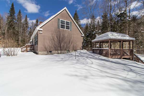 More than a house or a home, this is a retreat! Sited on wooded 26.5 acres with Roundy Brook running through, the 3-bedroom, 3-bath Cape has 2-car garage with overhead storage, paved drive & a gazebo placed in an optimal spot to take full advantage of the brook’s sounds and scenery. Serenity is calling! Full woodburning fireplace for those cozy nights with 3 full flues so you can also have supplemental heating, if wanted. Oil-fired boiler with multiple zones also supplies domestic hot water. Full-house automatic generator insures power even during outages, adding safety and security. Ideally located close enough to Kingdom Trails where you cas start from your garage! Minutes from Burke Mountain for exceptional skiing and riding along with other amenities. This is the center of The Northeast Kingdom with adventures in all directions from this driveway. A large deck overlook the brook and with numerous access points, you can fish, take a dip or just admire the water. There is a main floor bedroom as well as an office / work space, creating one-level living if desired. Upstairs is a very large loft with bedroom and family room, all sharing a 3/4 bath. Lower level offers another bedroom, bath and huge laundry. But it’s the yard and setting that will make you feel at home. Hidden behind the treelined road you’re screened from the bustling world at this retreat that is waiting for you.