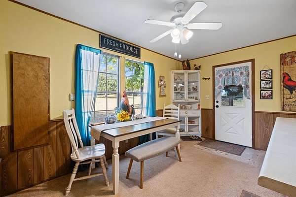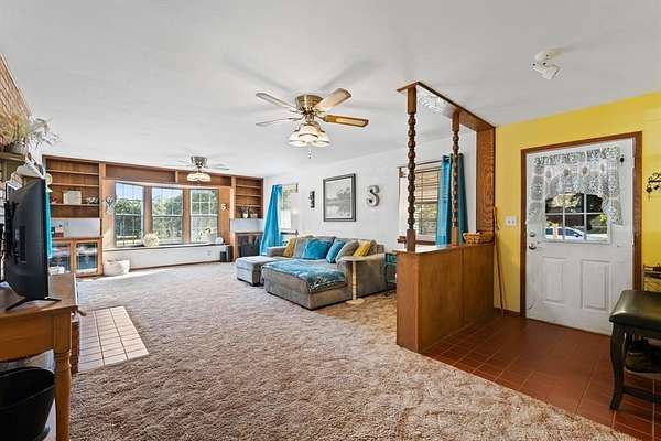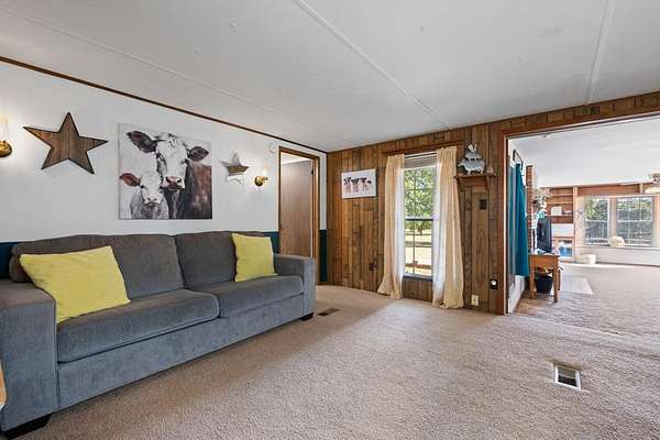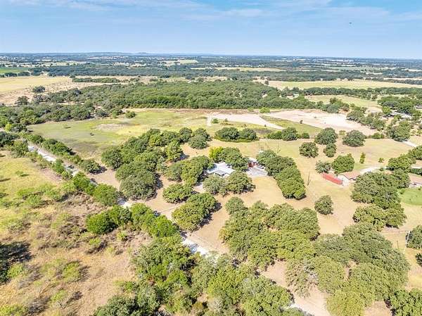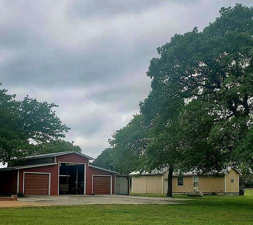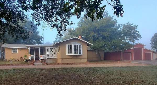 Welcome to this charming 3 bedroom, 2 bath home nestled on 4 acres of quiet, park-like landscape in Comanche County. This home offers plenty of room to grow and enjoy country living. Step inside to an open floor plan with an oversized living room with a wood-burning fireplace, bay window, and built-ins - perfect for cozy evenings or entertaining guests. The kitchen features a gas cooktop, dishwasher, and refrigerator. The kitchen has two adjoining rooms that can serve as a dining room, hobby room, and or serving area. The outdoor living is exceptional: large covered porches front and back invite you to relax, and mature oak & pecan trees offer shade and charm. Adding to its appeal are several outbuildings: a 40x30 insulated metal 3-bay garage, and a 25x12 storage building with electrical and plumbing. The lot is level with some trees for privacy, yet open enough for flexibility with outdoor uses and landscaping.