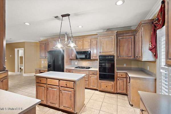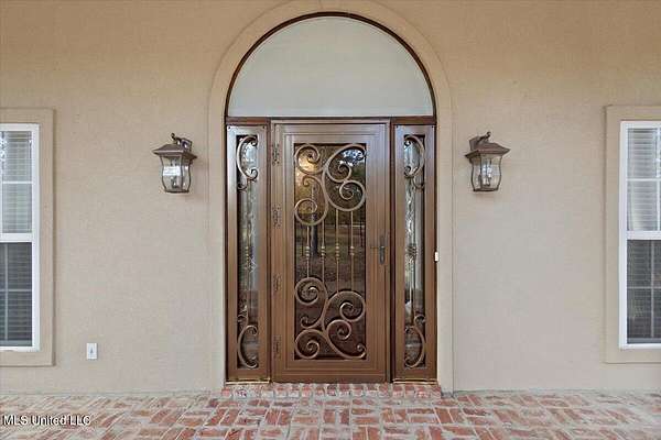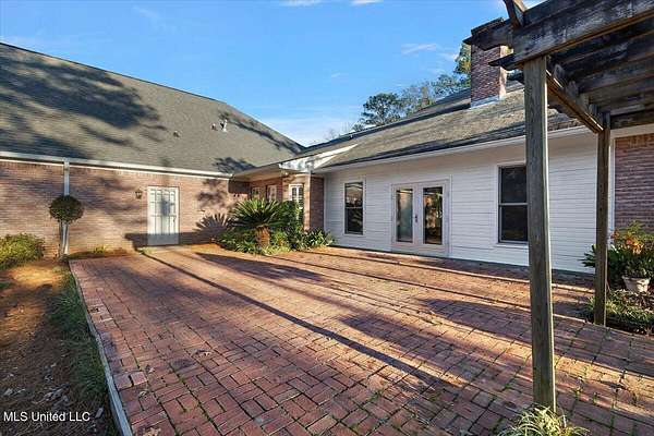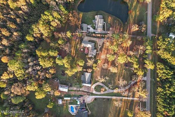Welcome to your dream home! This stunning 4-bedroom, 3.5-bath split-plan residence is nestled on 3 acres of serene beauty, offering the perfect blend of elegance and comfort. Step onto the charming bricked front porch and through the exquisite wood entry door, adorned with an arched transom and leaded glass side lights. Inside, you'll find security doors, rich wood floors, and impressive extra-large crown and base moldings, all complemented by plantation shutters. The heart of the home features a cozy brick fireplace and an open dining area that flows seamlessly into a gourmet kitchen. Here, you'll enjoy a spacious island, a gas cooktop, a wall oven, and wood cabinets topped with crown and dentil molding, including glass front cabinet doors for a touch of sophistication. Retreat to the master suite, complete with tray ceilings, a luxurious master bath featuring his and hers vanities, a jetted tub, a separate shower, and a grand walk-in closet with built-ins. The convenience of a laundry room adjacent to the walk-in closet adds to the home's functionality. Upstairs, a large bedroom with built-ins and a private bath offers additional space and privacy. The beautiful sunroom, with its bead-board ceiling, invites you to relax and enjoy the view. Step outside to a large brick patio, perfect for entertaining, and discover the added bonus of a shed for extra storage. This home is truly too good to be true, but it can be yours. Come see it for yourself before someone else does!