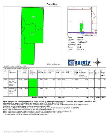 A rare chance to acquire approximately 30 acres of high-quality, dual-purpose land in Bureau County, just outside of Peru, IL. Offering Class A agricultural value alongside strong development potential, this property features excellent visibility and access to Interstate 80. Zoned M2 Heavy Industrial, it's ideally suited for a range of industrial uses while also providing consistent income from productive tillable acreage.