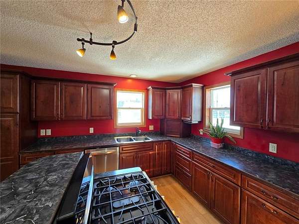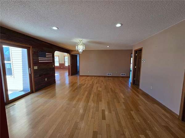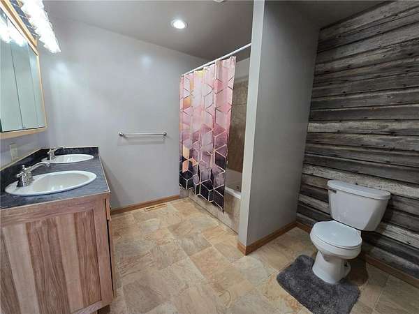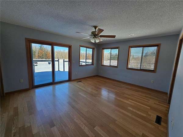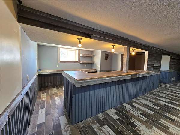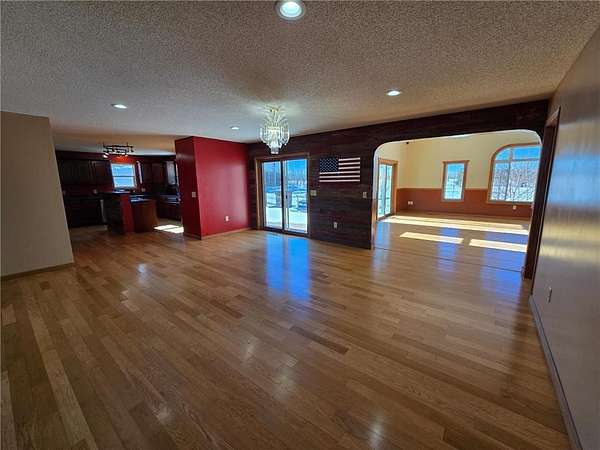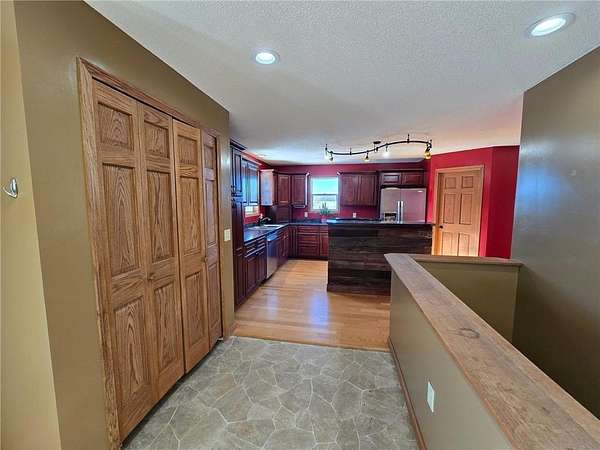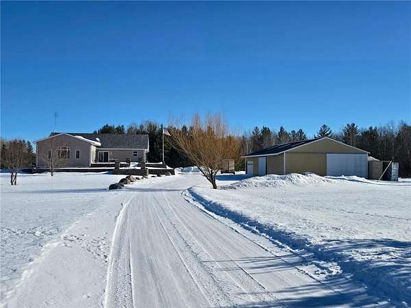 Welcome home! Perfect privacy is waiting for you in this generous sized 5-bedroom home. Situated on a 5 acres lot surrounded by nothing but nature. Greeting you at the drive entrance is a large nature pond that often hosts waterfowl of every kind, deer, bear and any other creature passing through. An ample size pole building/garage with electric provides more than basic storage space. One side has concrete with a floor drain, overhead door, service door, garage door opener and is insulated. The remainder of the pole building is a cold storage space with loft area above the insulated side. Now let's take a look at the BEST part of the exterior of this home. An absolutely stunning massive wrap around, multi-level paver patio. The icing on this masterpiece is the many perennial flowers and plants around the patio, due to return this spring! Waiting for you inside this custom designed home is blend of modern country style and warm rustic charm. A great wide open flowing floor plan starts in the entry area with a convenient half bath and staircase to the lower level. Next you will find a warm spacious kitchen, beautiful custom cabinets, stainless steel appliances and pantry. Adjoining the kitchen is the huge dining/gathering room with access to the patio and every additional room on the main floor. You will love the great room with so many massive windows providing an incredible view of the outdoors and sunsets. The primary bedroom offers a generous walk-in closet, glass door to a private deck, a spa like private bath with large, jetted tub, dual sink vanity and a 2 person walk in tile shower. Two additional bedrooms as well as a full bath with another jetted tub complete the main level. In the lower level the home offers 2 more bedrooms, 2 generous storage rooms (potential exercise, craft rooms, office) and a 3/4 bath with tile shower. Last but certainly not least, an enormous entertainment room with bar area and projection area with a screen. Reclaimed tin and rustic wood accents along with the beautiful tile floors make this room a space a showstopper. Now imagine yourself in this incredible home, or on that patio on a summers evening, book a showing and get packing. This home will not disappoint!